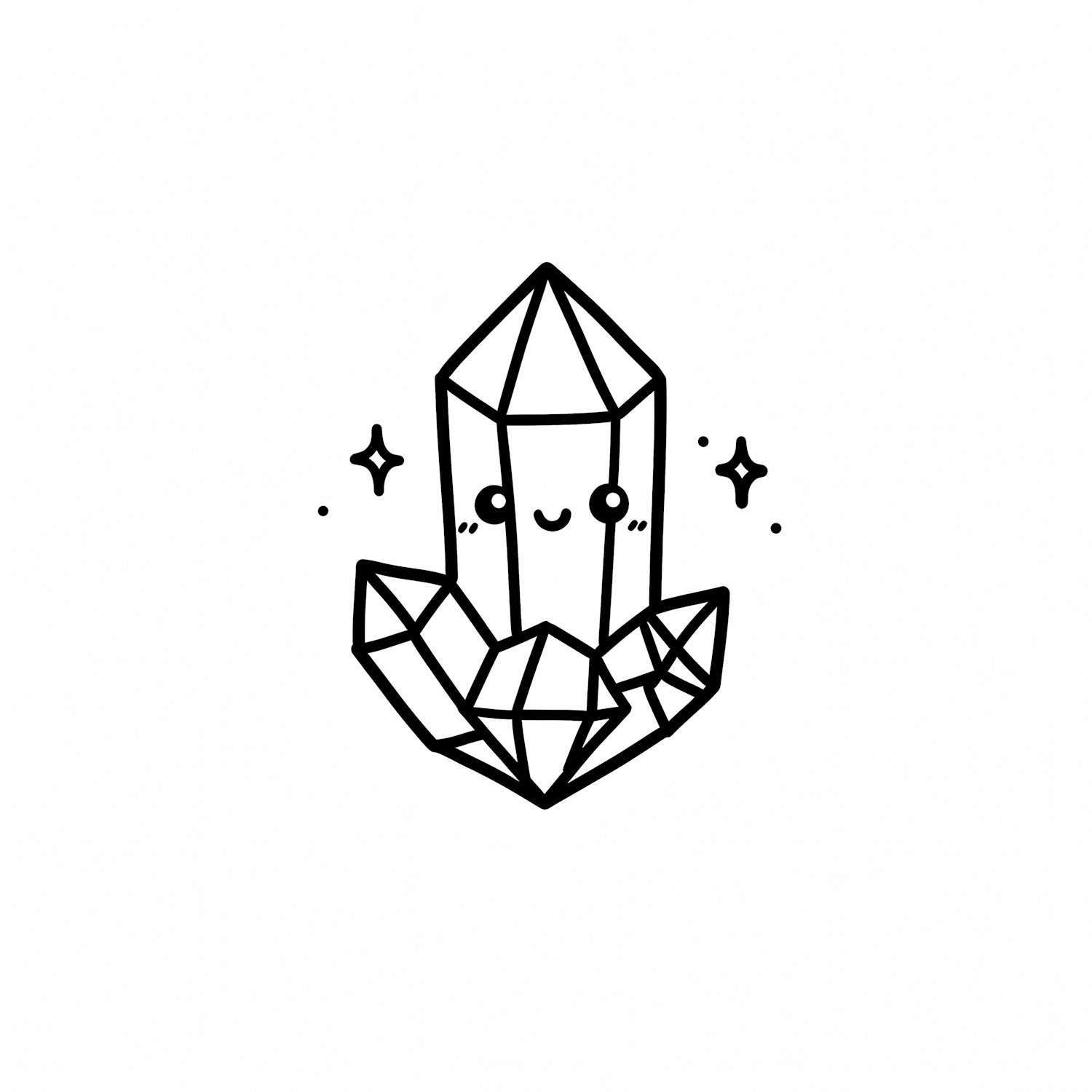 Adorable black-and-white illustration of a smiling crystal cluster with sparkles, perfect for creative and whimsical designs.