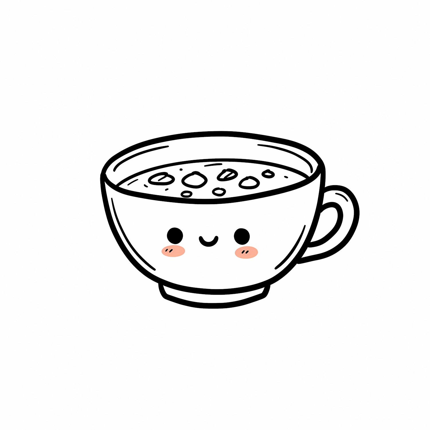 A cute illustrated cup with a smiling face and rosy cheeks, filled with a bubbly liquid, drawn in a minimalistic and playful style.