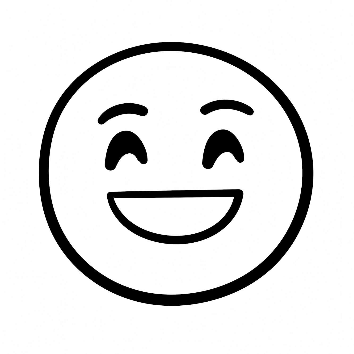 A black-and-white smiling face emoji illustration with closed eyes and a wide smile, perfect for digital or graphic design use.
