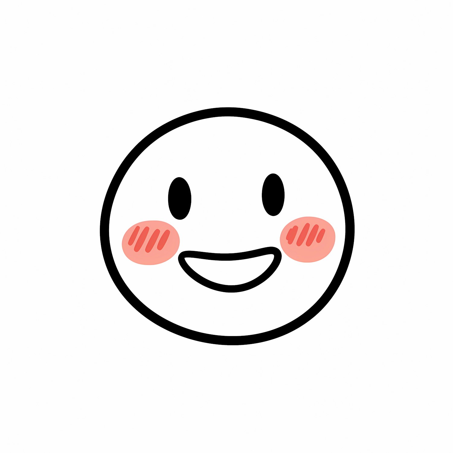 A cheerful and minimalistic smiling face illustration with pink cheeks on a white background, perfect for conveying happiness.
