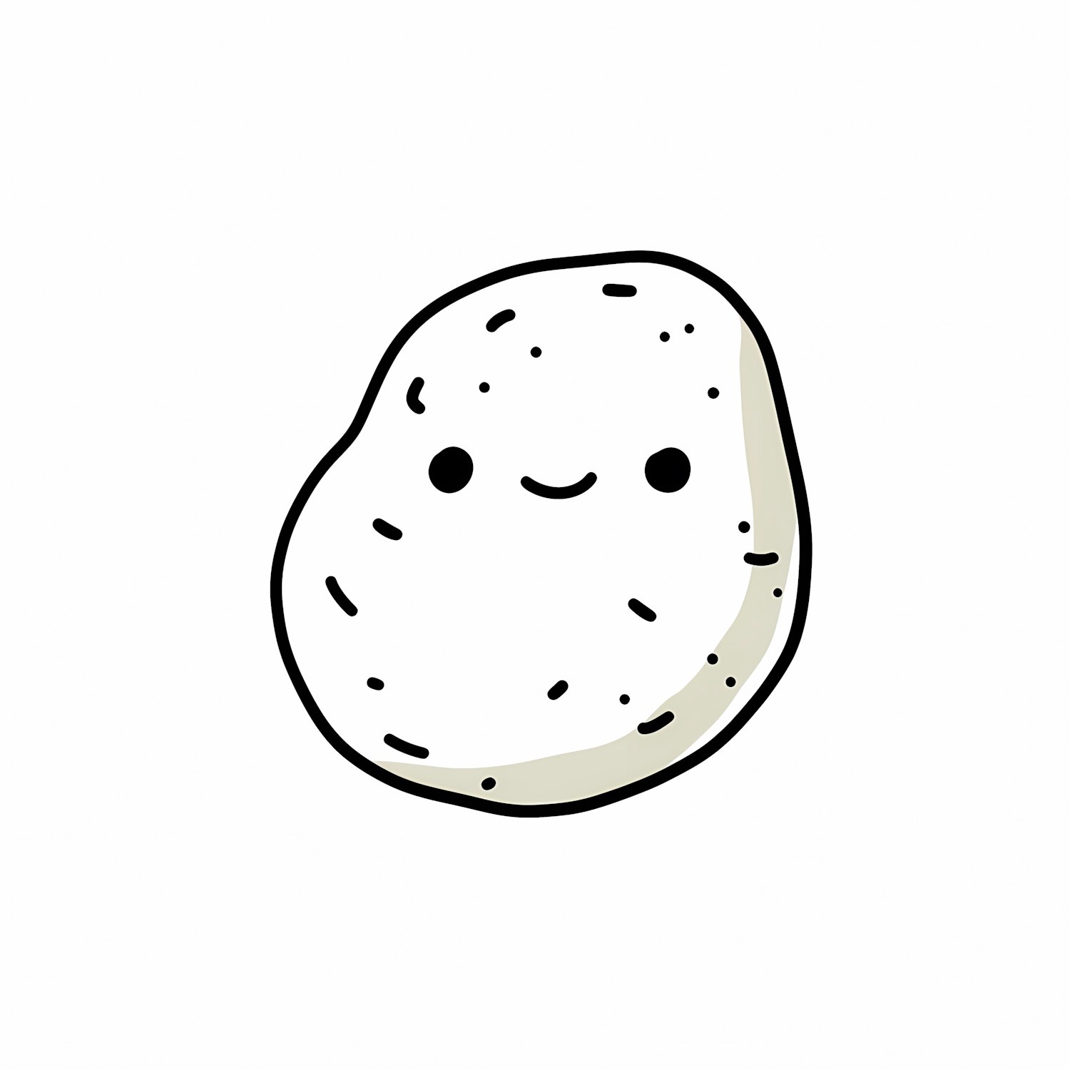 A cute cartoon potato with a smiling face, drawn in a simple and minimalistic style on a white background.
