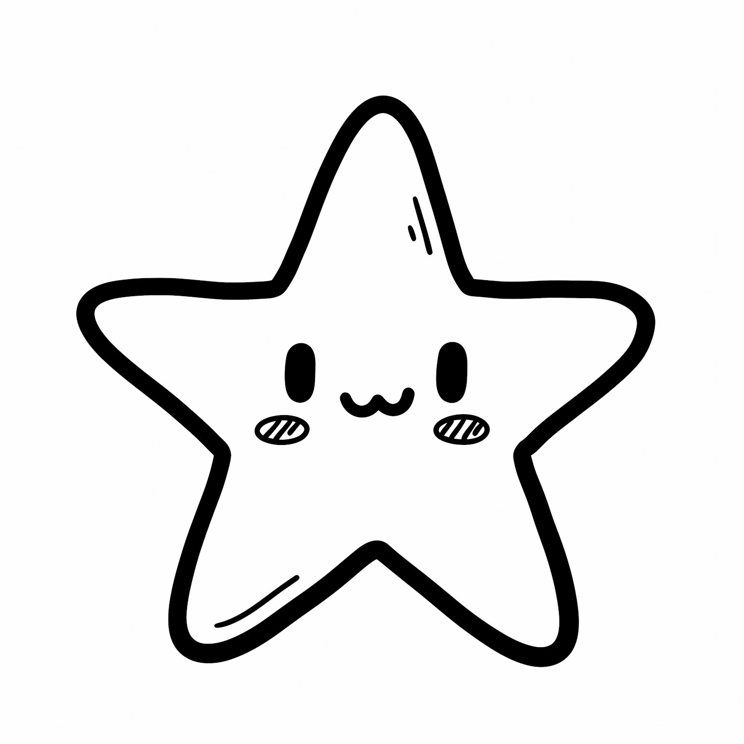A cute black-and-white cartoon star with a smiling face and blushing cheeks, perfect for playful and cheerful designs.