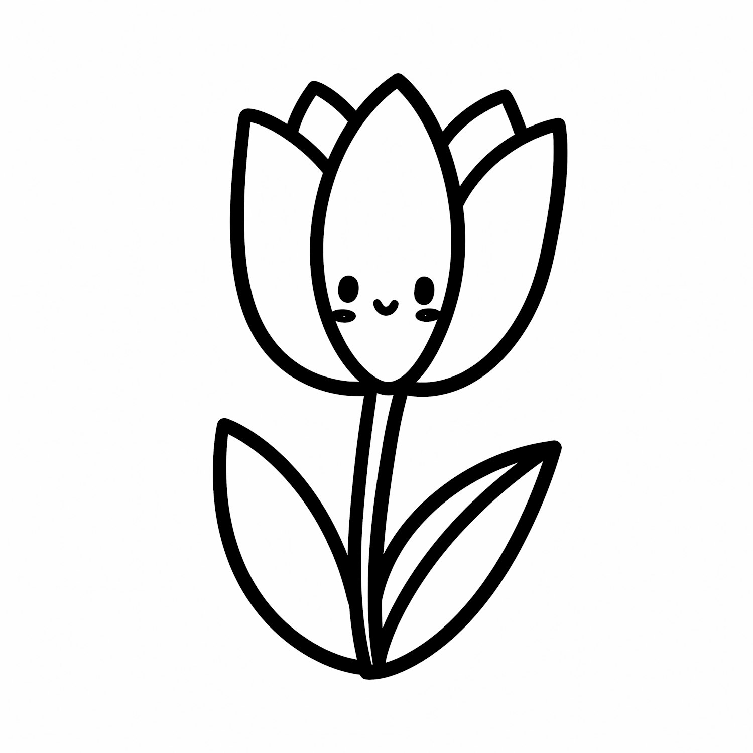A cute black-and-white cartoon tulip with a smiling face, perfect for coloring or cheerful designs.