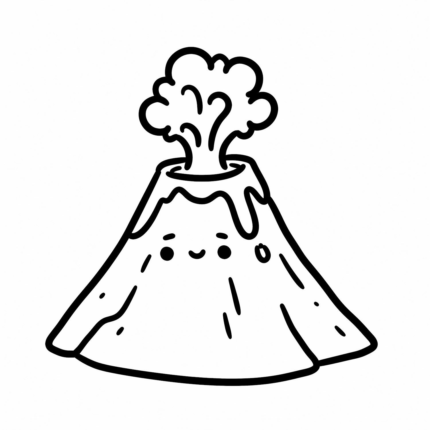 Adorable cartoon volcano illustration with a smiling face and smoke puff, perfect for kids' designs or fun educational materials.