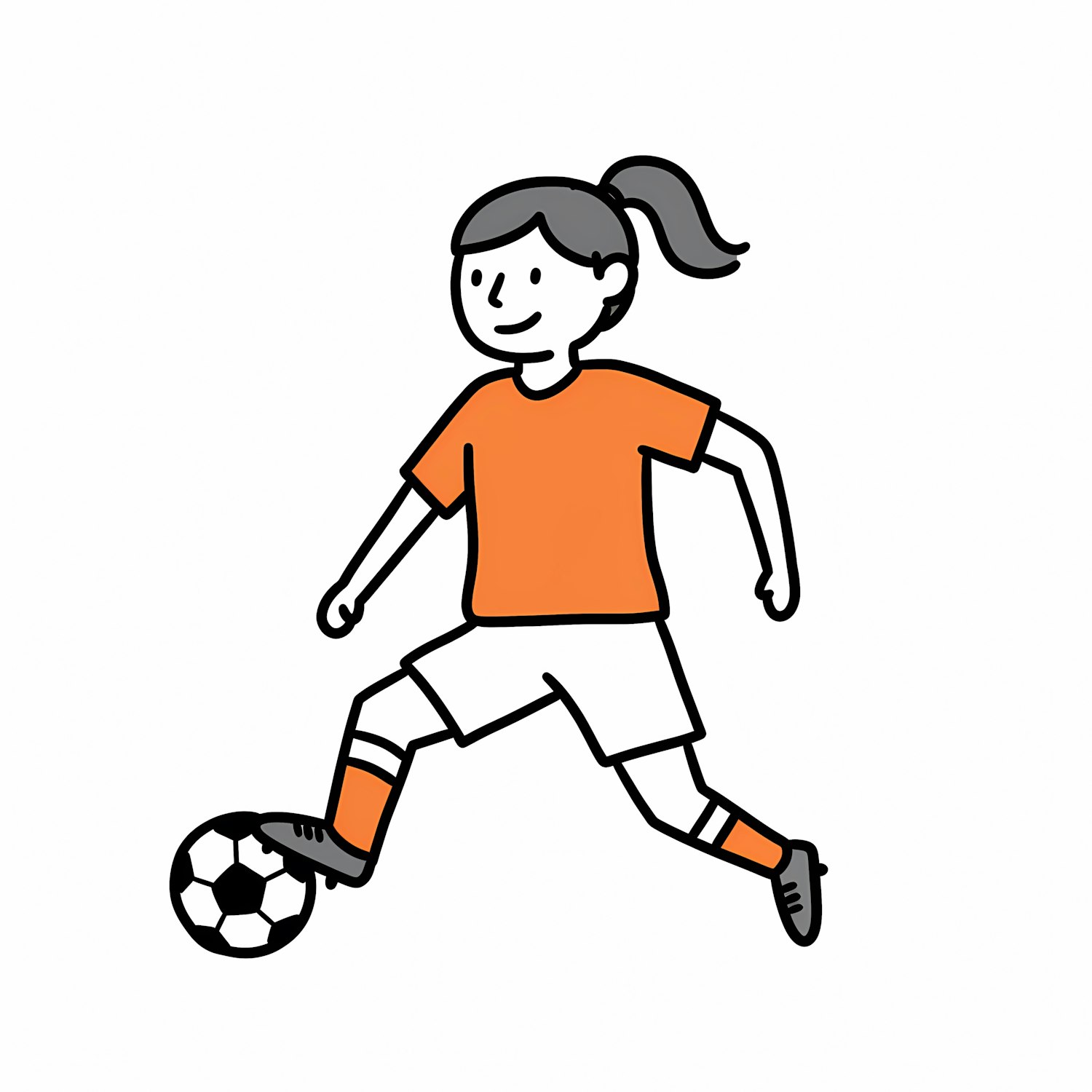 Cartoon illustration of a soccer player in an orange jersey kicking a ball, perfect for sports-themed designs.