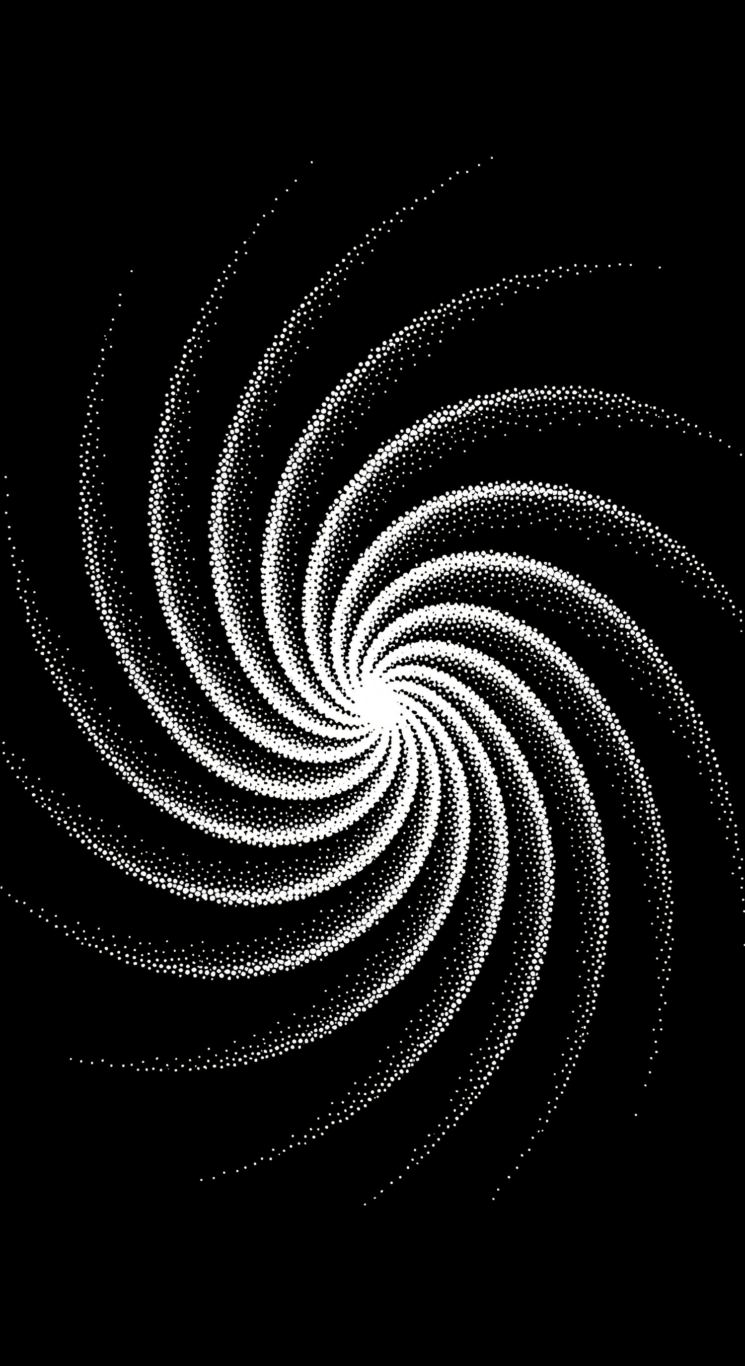 A captivating spiral pattern of white dots on a black background, creating a dynamic and hypnotic visual effect.