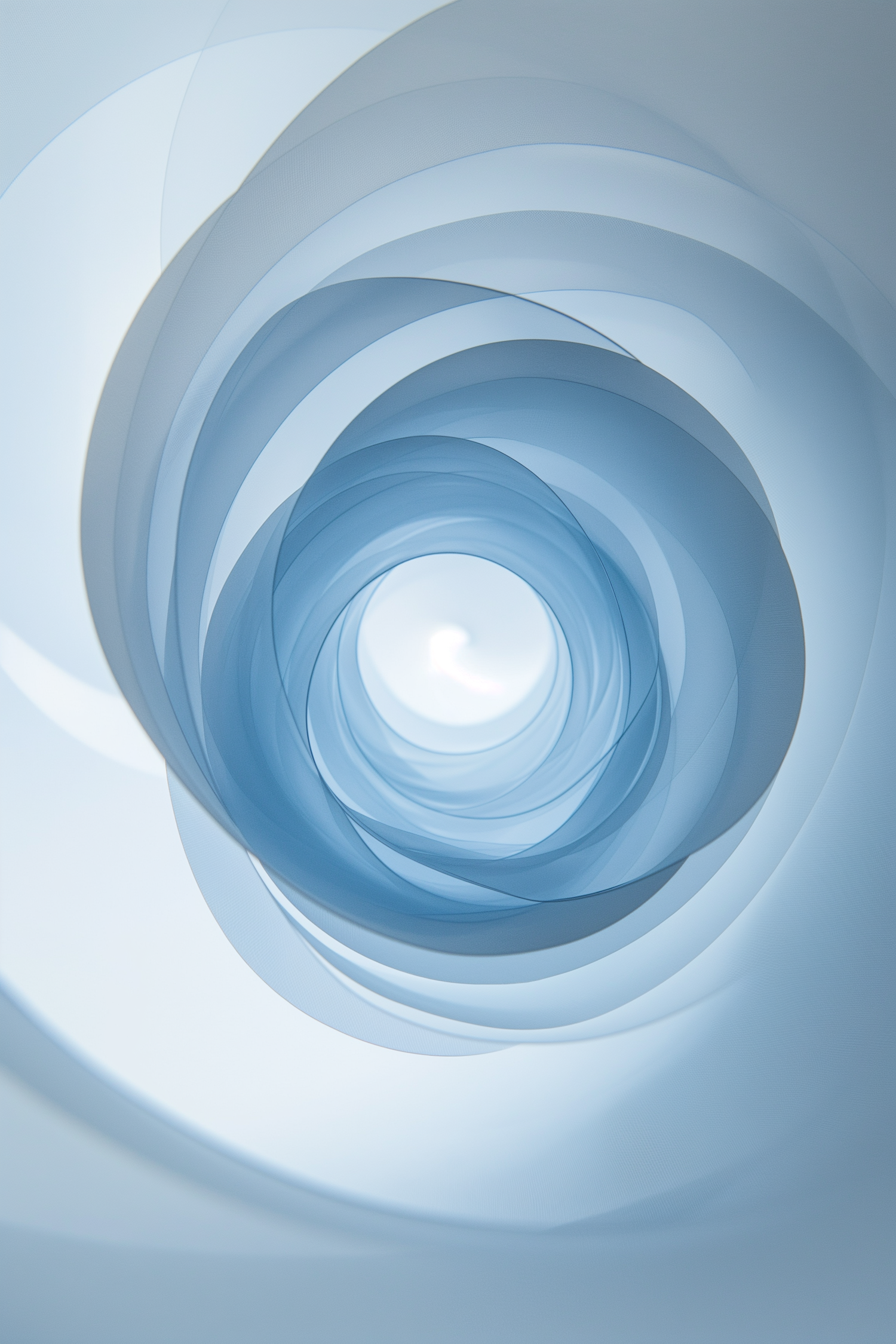 Abstract spiral design with translucent blue and white layers forming a tunnel-like vortex, creating depth and a calming aesthetic.