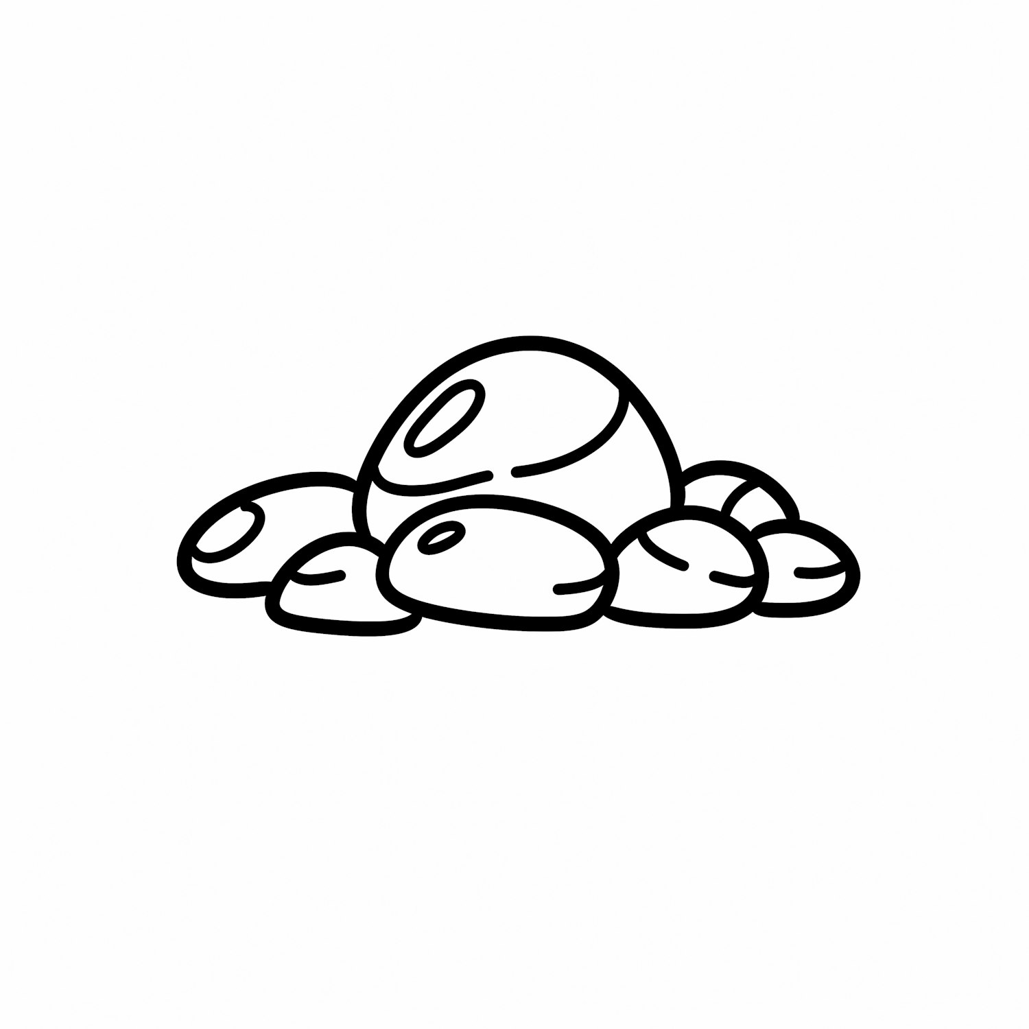 Minimalistic black-and-white line art of a pile of smooth stones, perfect for coloring or design projects.