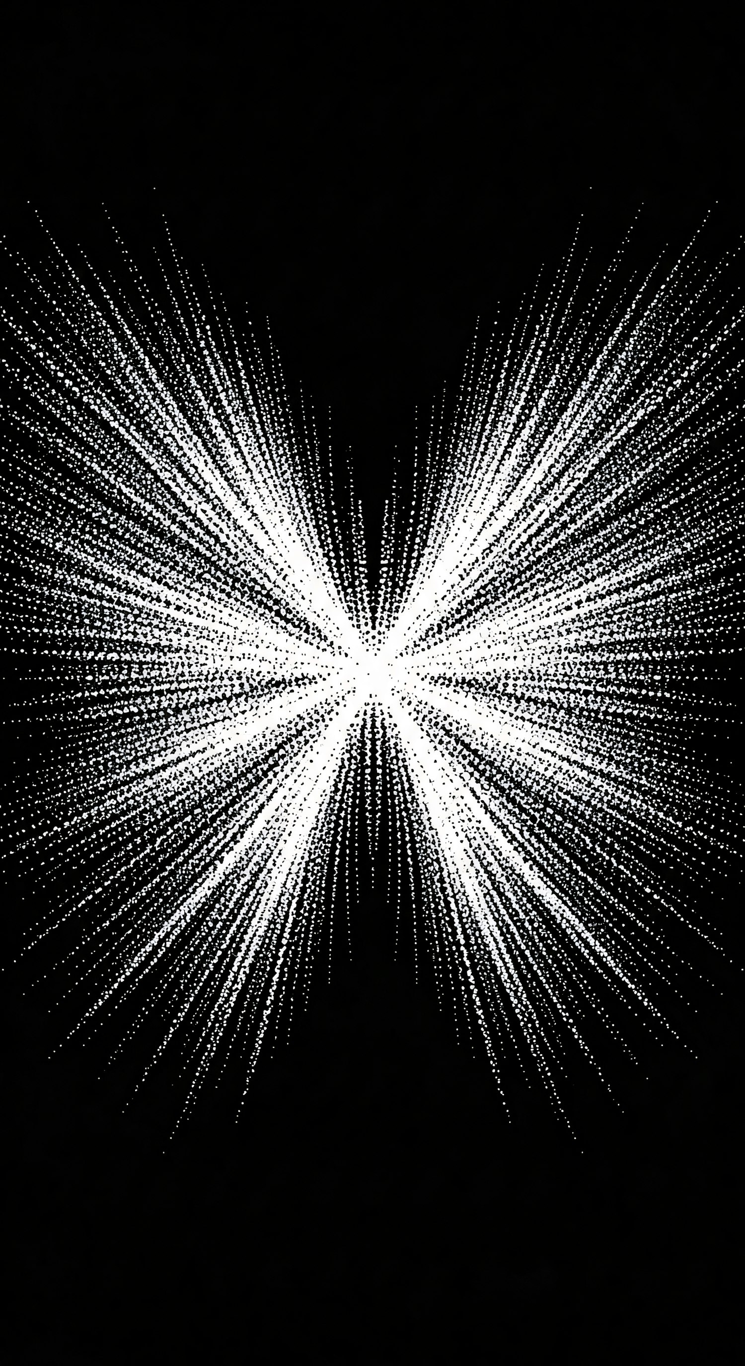 A striking starburst pattern of white dots radiating symmetrically on a black background, creating a dynamic and visually captivating design.