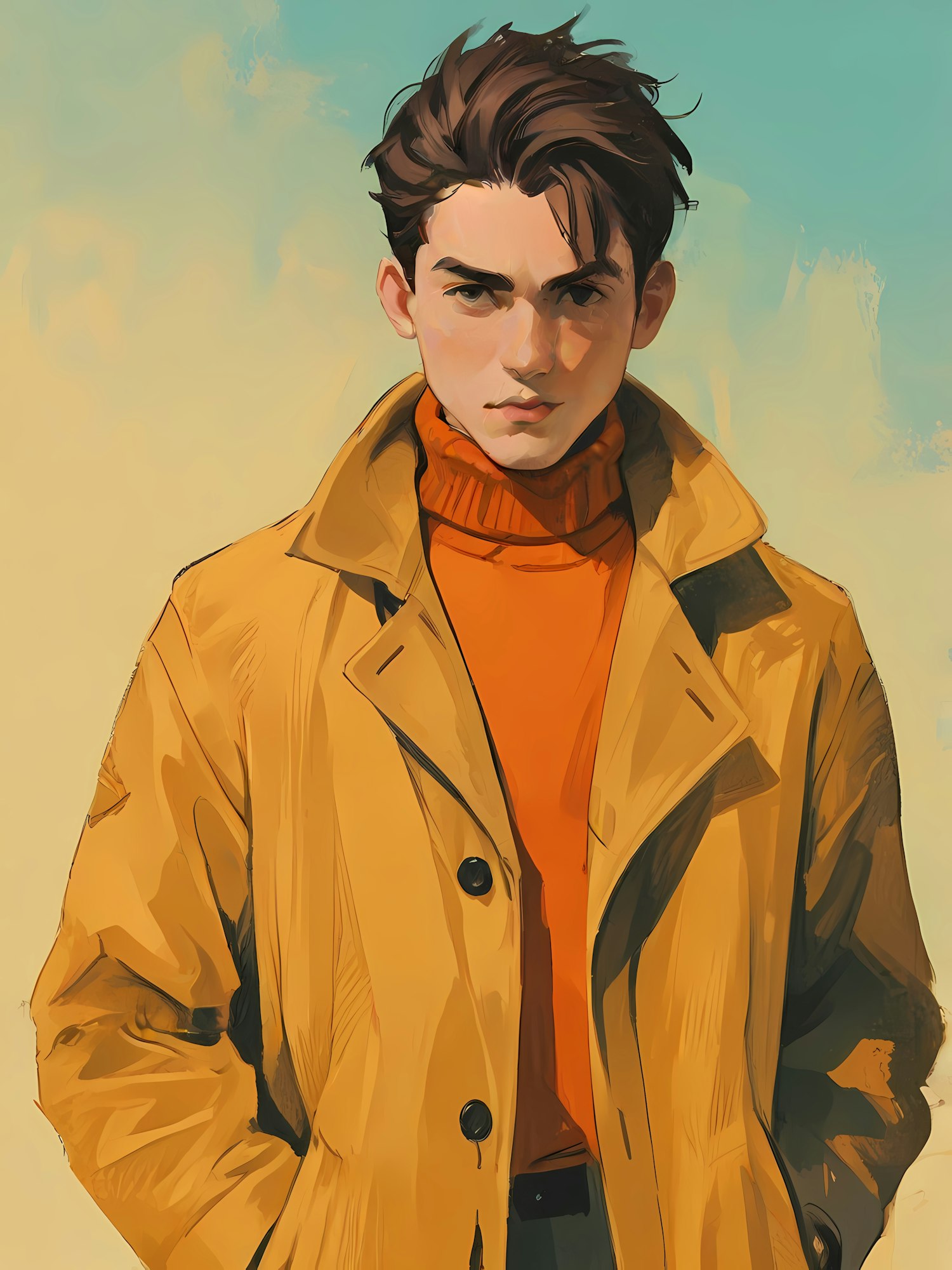Stylish illustration of a person in a yellow coat, set against a gradient backdrop. The vibrant colors create a modern and dynamic feel.