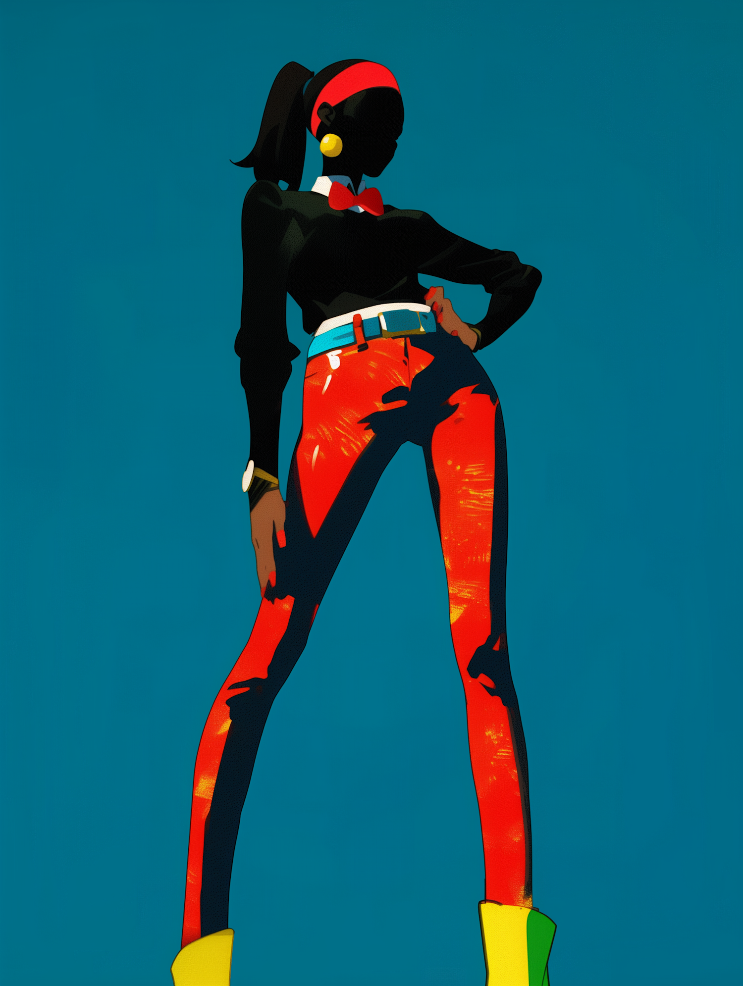 Stylized illustration of a person in vibrant red pants and yellow boots, exuding confidence against a blue background.