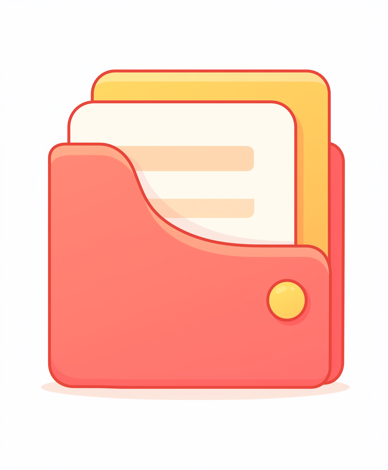 Stylized illustration of a red file folder with documents and a yellow tab, featuring a modern and friendly design.