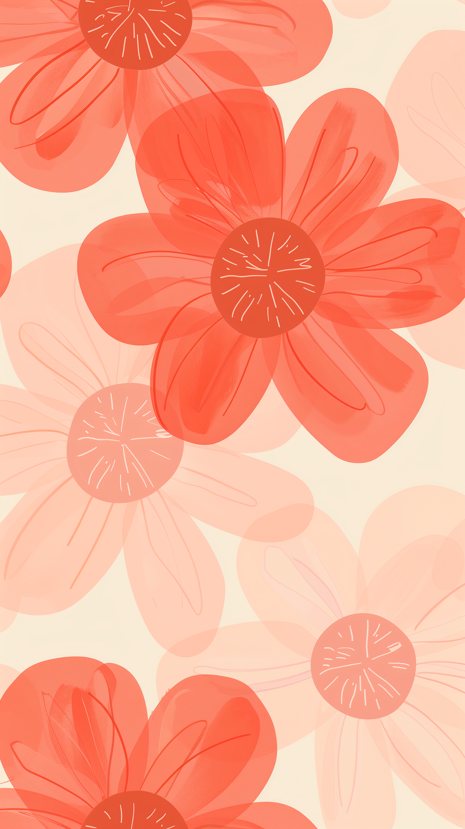 Bright red and orange flowers with translucent petals on a soft beige background, creating a modern and playful floral design.