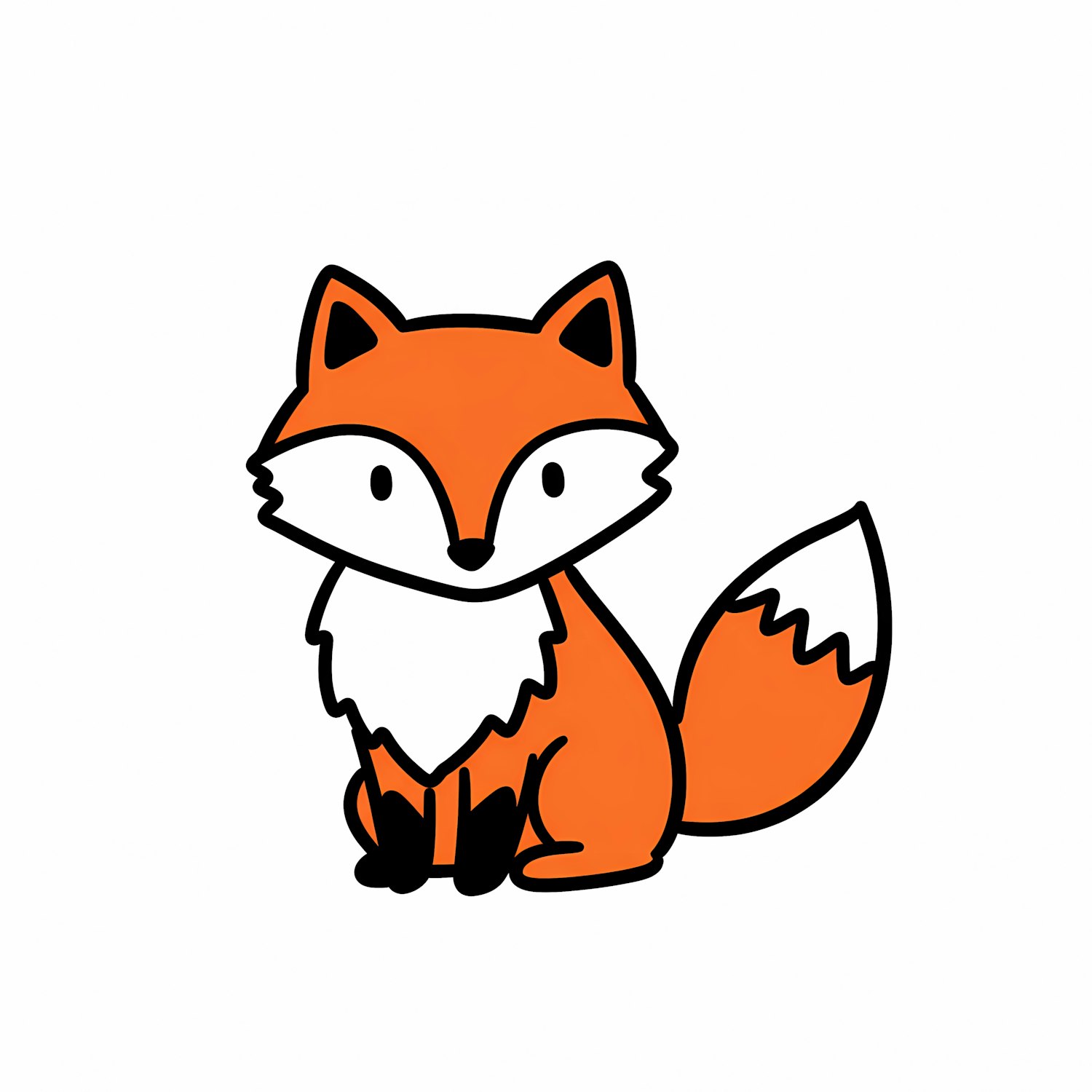 Cute cartoon fox illustration with vibrant orange fur and a white chest, perfect for kids' designs or playful decor.