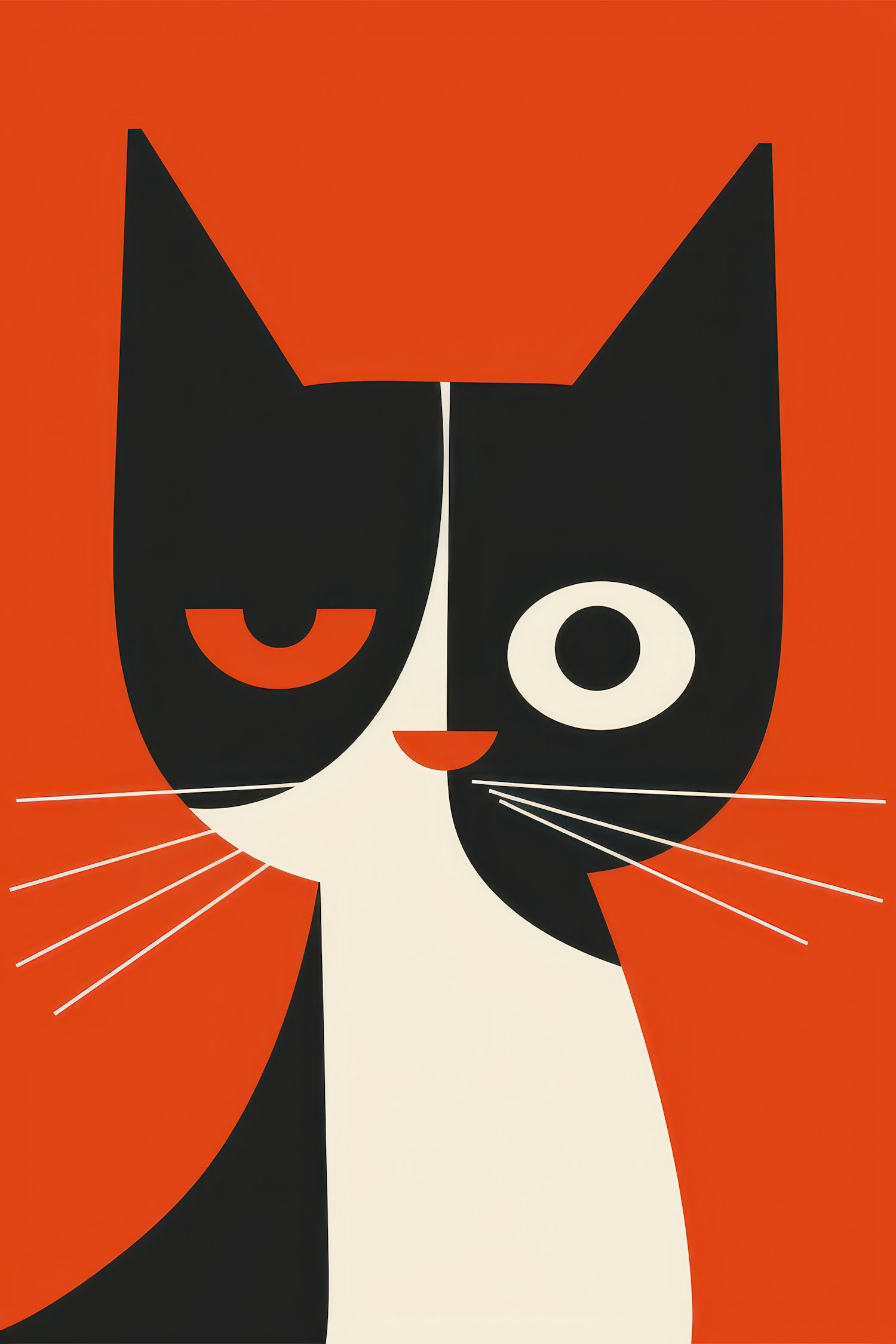 Stylized cat illustration with bold black and white design on an orange background. Modern, minimalist, and visually striking.