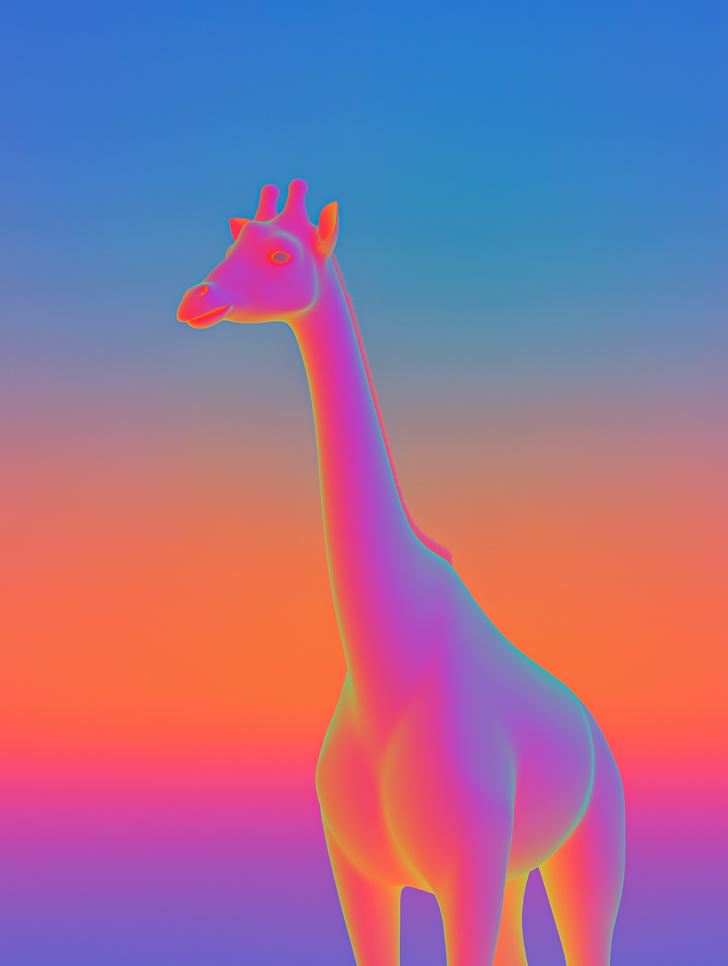 A vibrant 3D-rendered giraffe with neon colors stands against a gradient background, blending artistic creativity with wildlife inspiration.