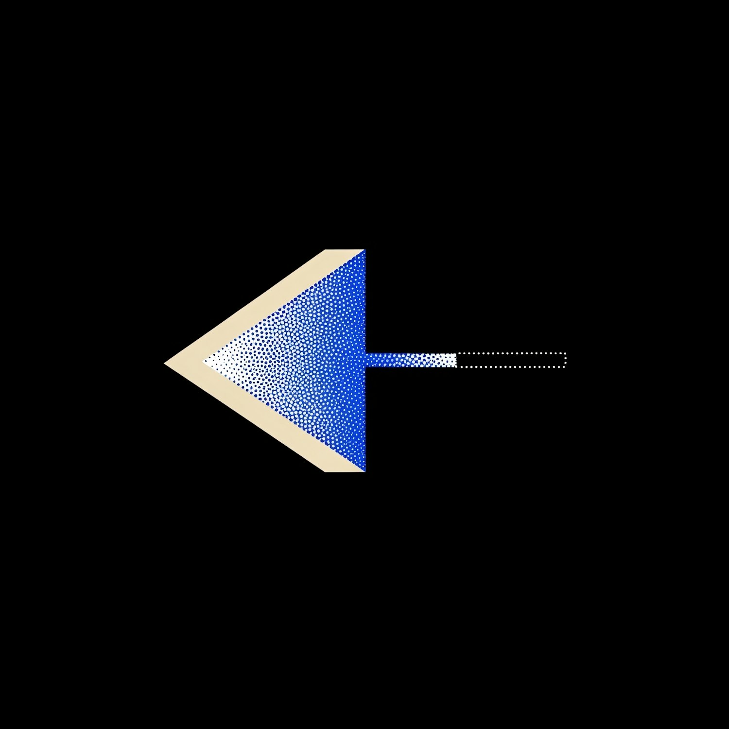 Stylized blue and white dotted arrow on a black background, with a beige outline and a modern, clean design.