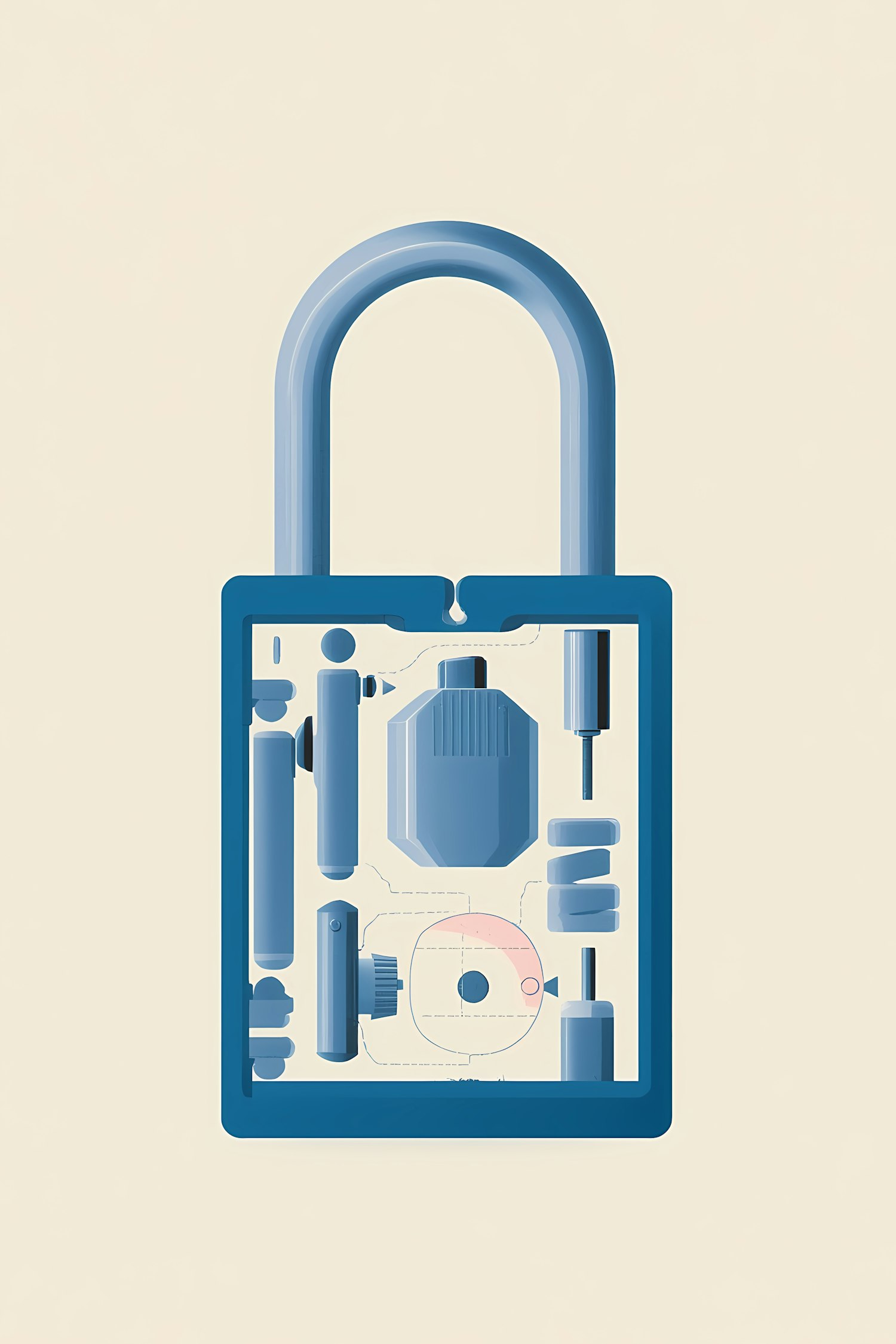 Stylized illustration of a padlock with visible internal components, showcasing its intricate mechanisms in a clean, modern design.