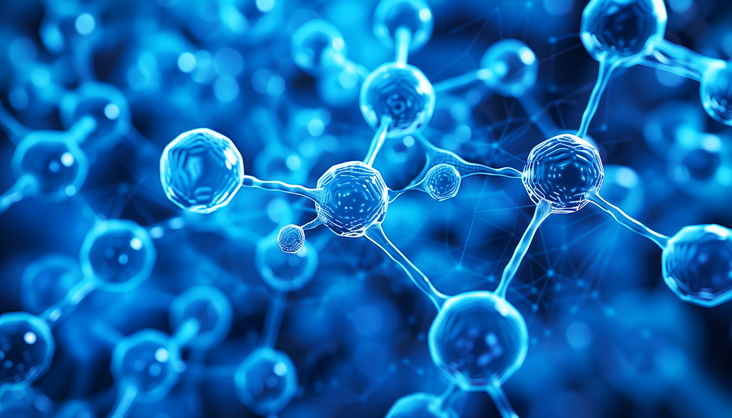 Explore the intricate beauty of molecular structures with this vibrant blue depiction of interconnected atoms and bonds.