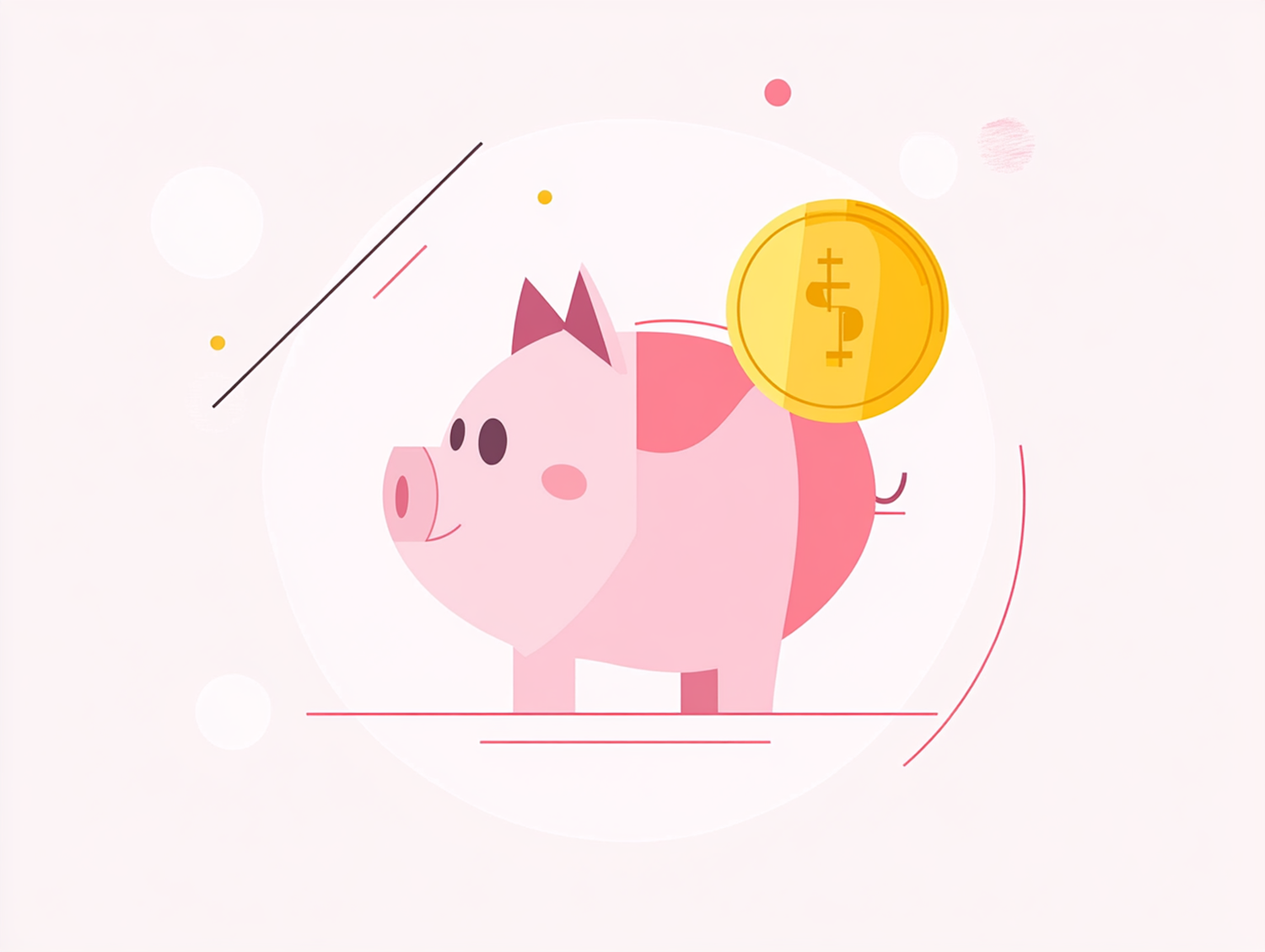 Cute illustration of a pink piggy bank with a golden coin, symbolizing savings and financial growth.