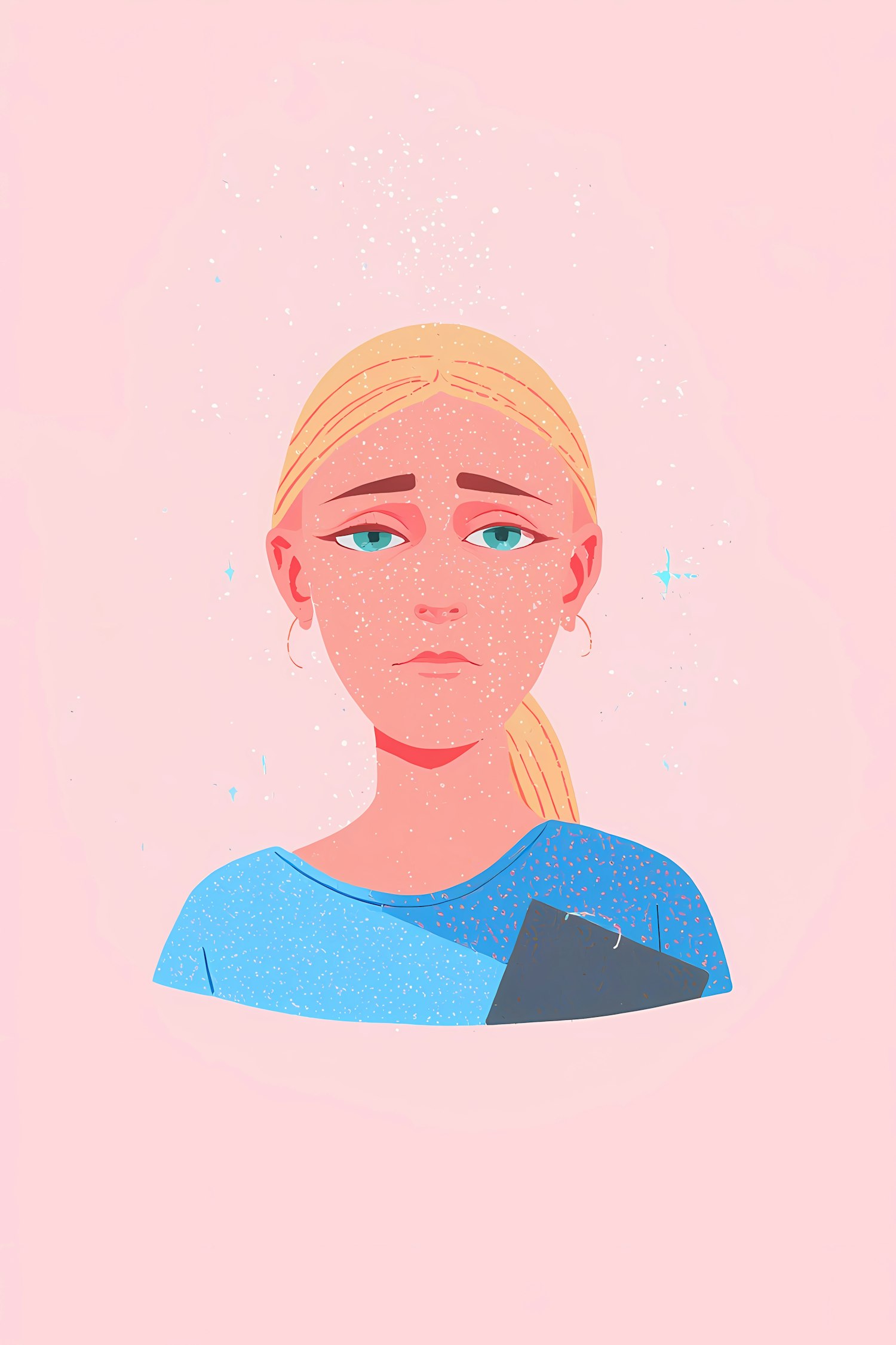 A modern illustration of a blonde-haired individual with a soft pink background, showcasing a clean and minimalistic art style.