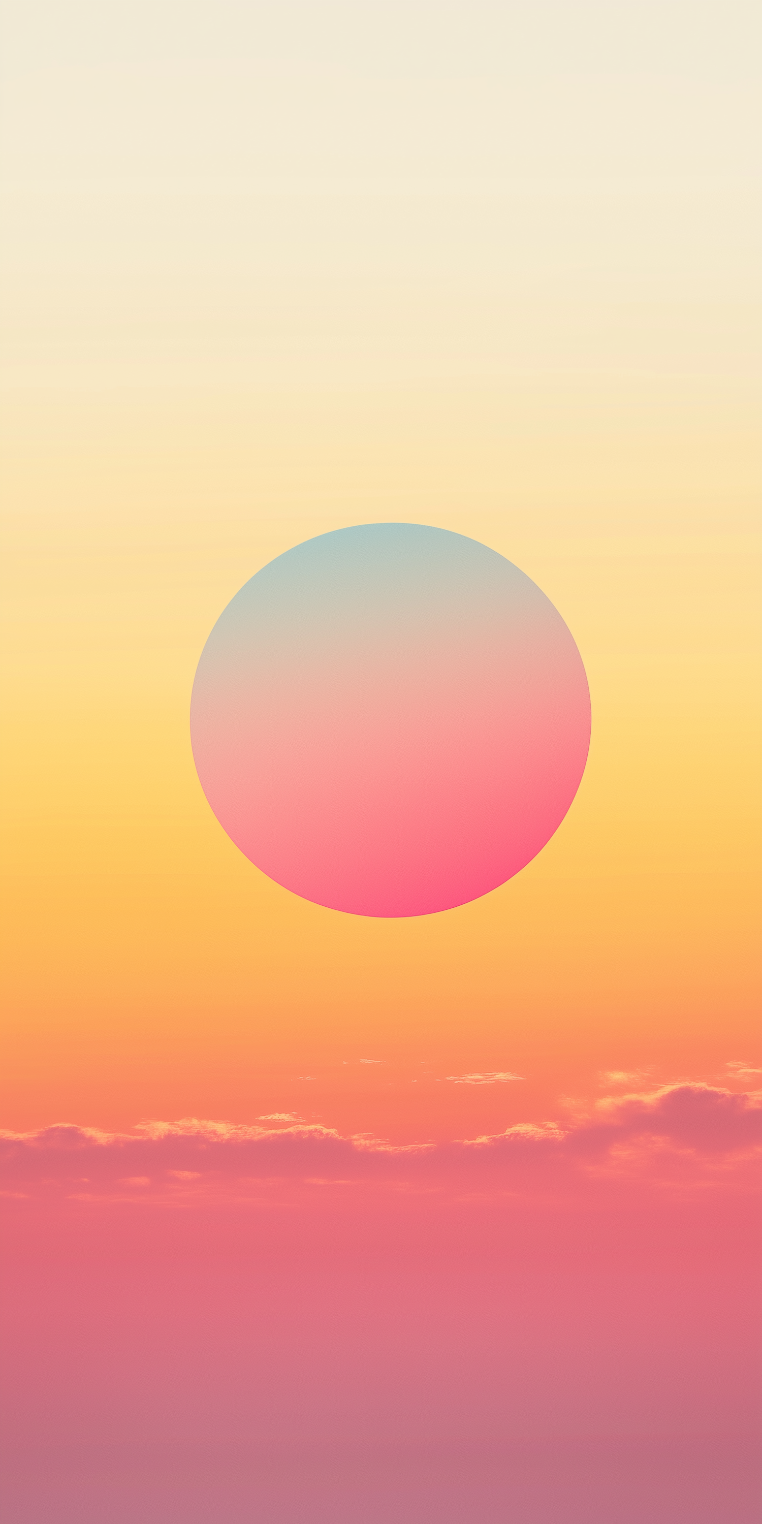 A dreamy gradient circle against a warm-toned sky with soft clouds, blending pastel blues, pinks, and oranges in a minimalist style.