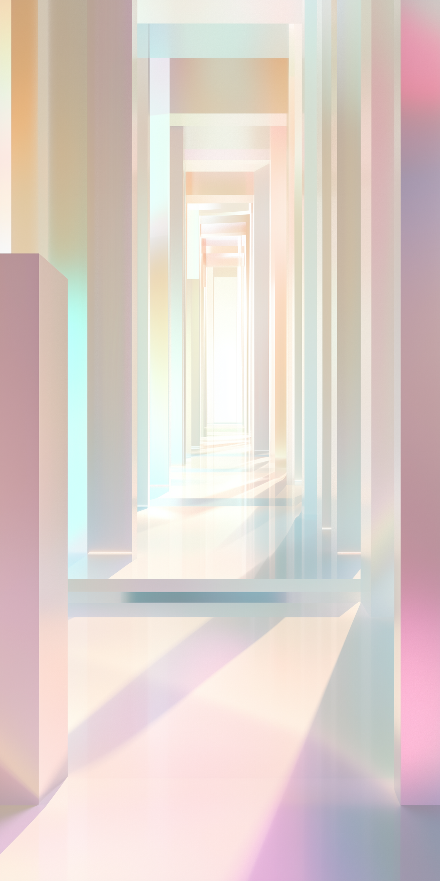 A pastel-colored hallway with infinite frames, soft light reflections, and a dreamy, modern aesthetic. Perfect for surreal and calming vibes.