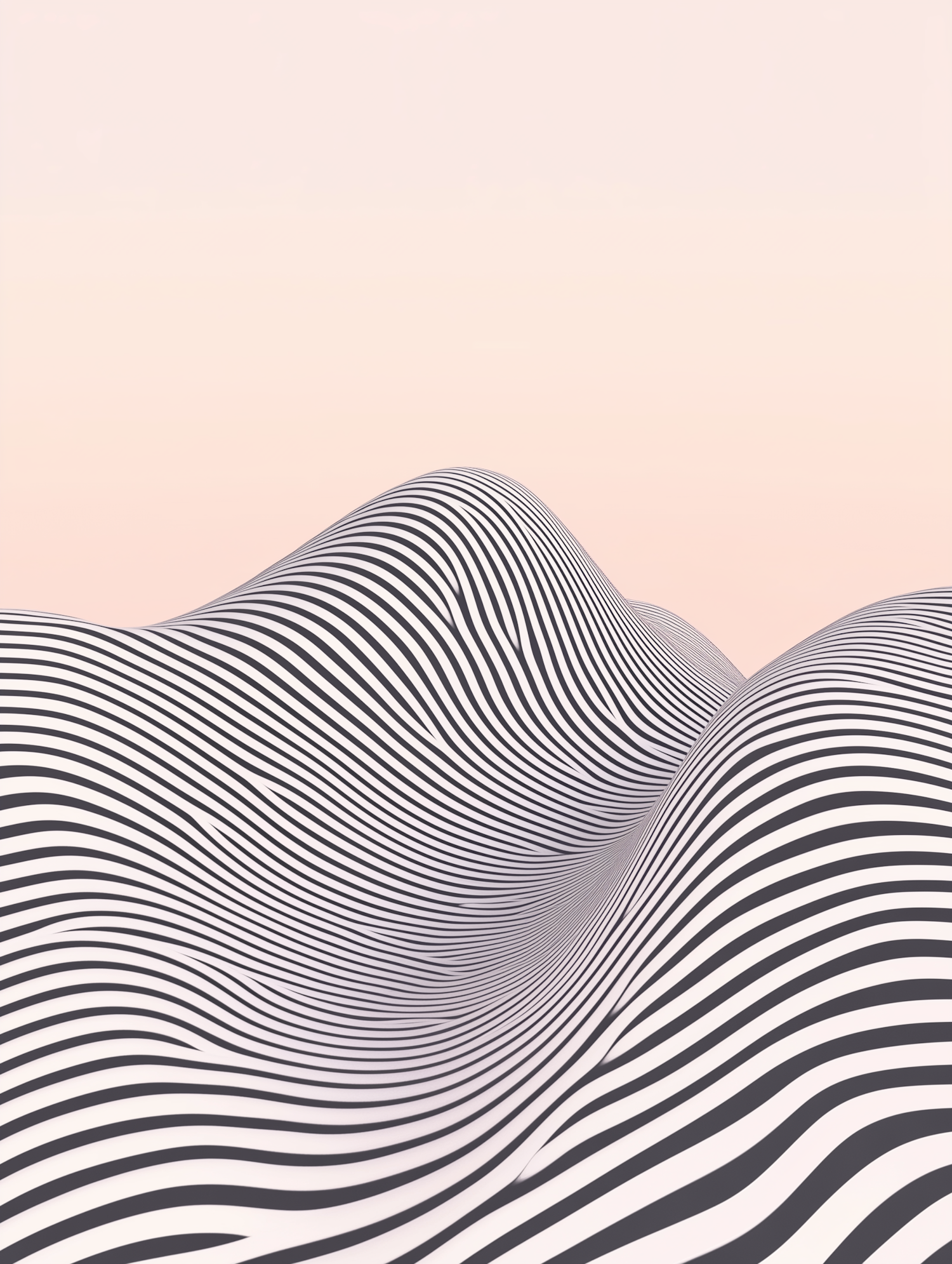 Abstract black and white striped hills with a soft peach gradient background, creating a surreal and modern optical illusion.