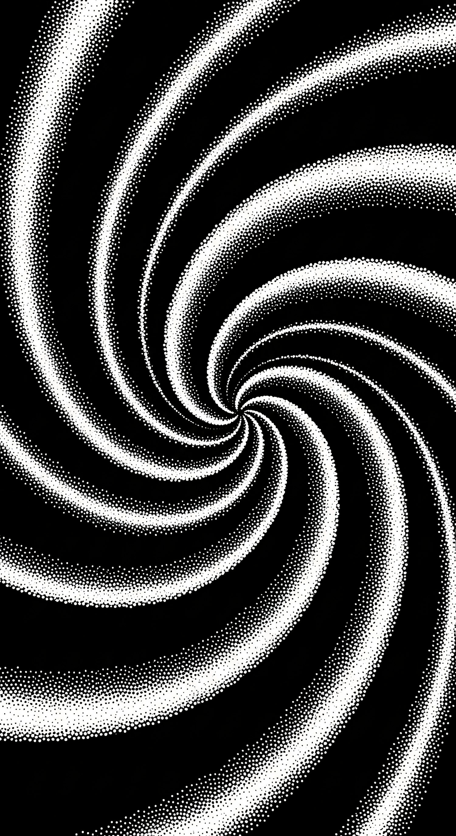 Abstract black and white swirl pattern with dotted lines creating a hypnotic visual effect.