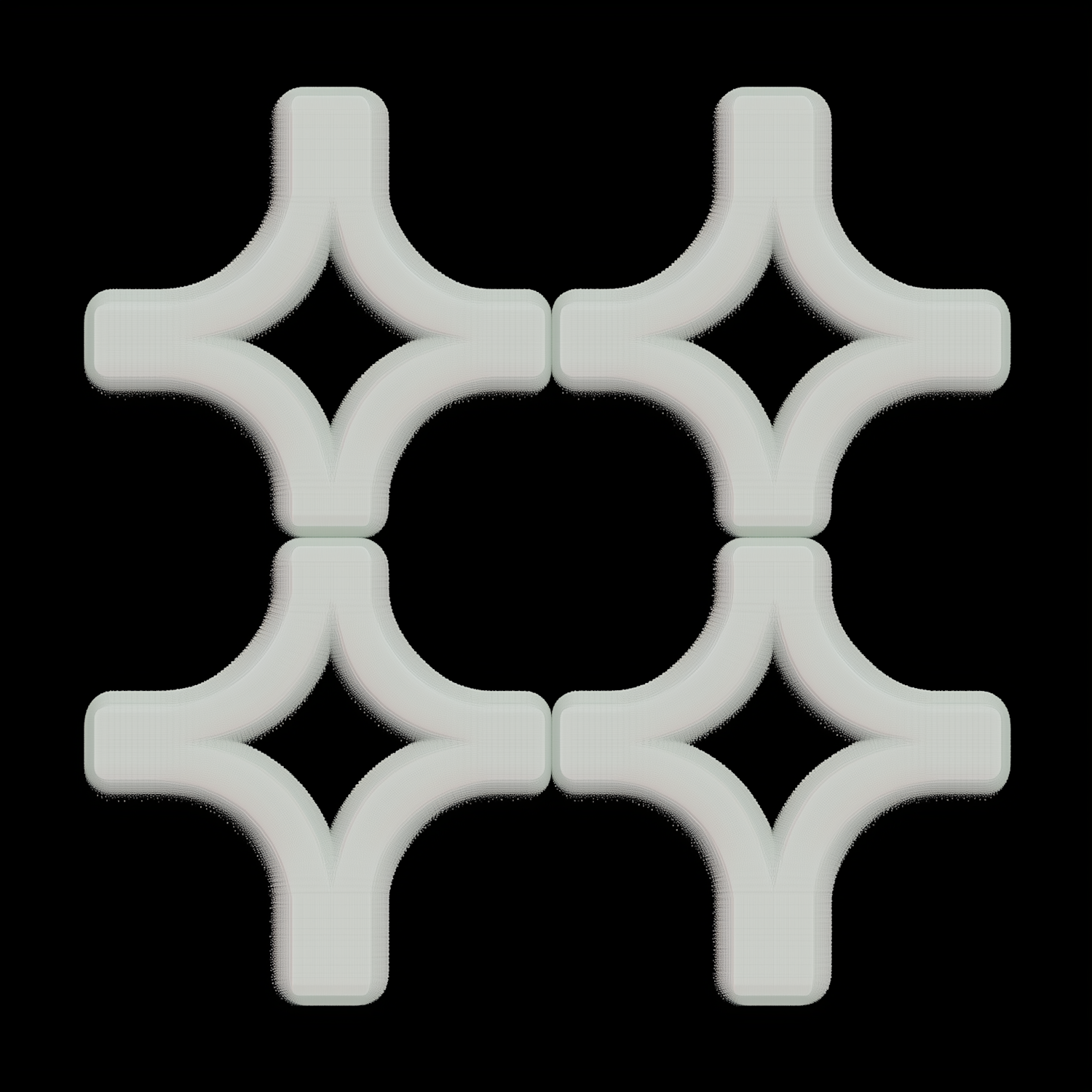 Minimalistic geometric pattern of glowing rounded crosses on a black background, creating a striking and symmetrical design.