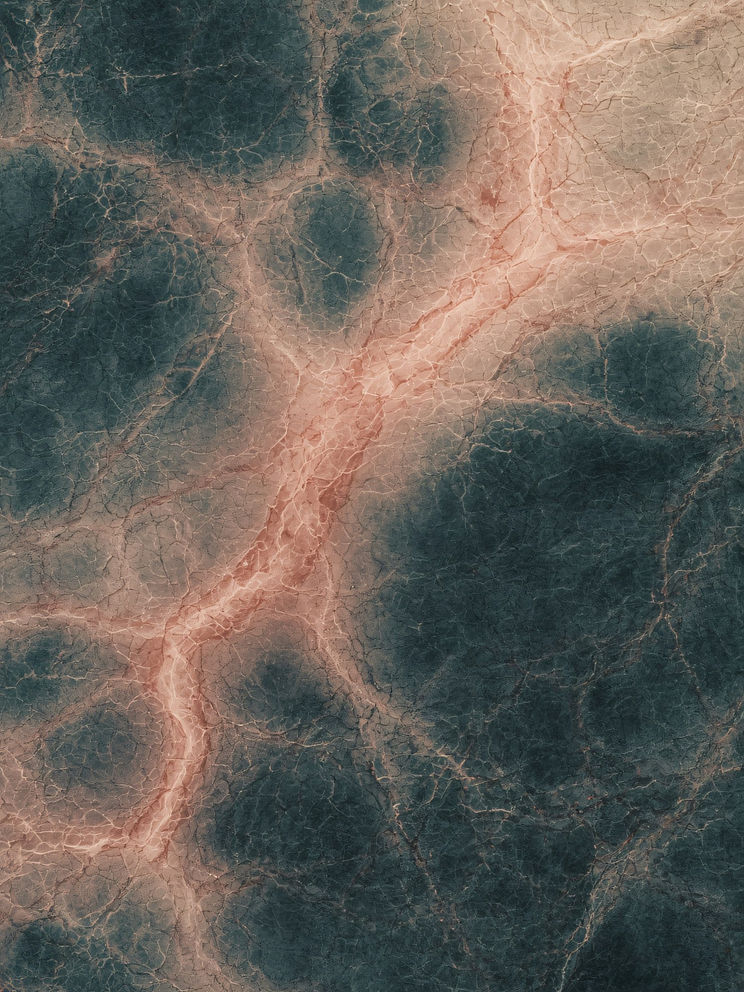 Abstract close-up of a textured surface with teal and pink tones, featuring intricate vein-like patterns resembling natural stone.