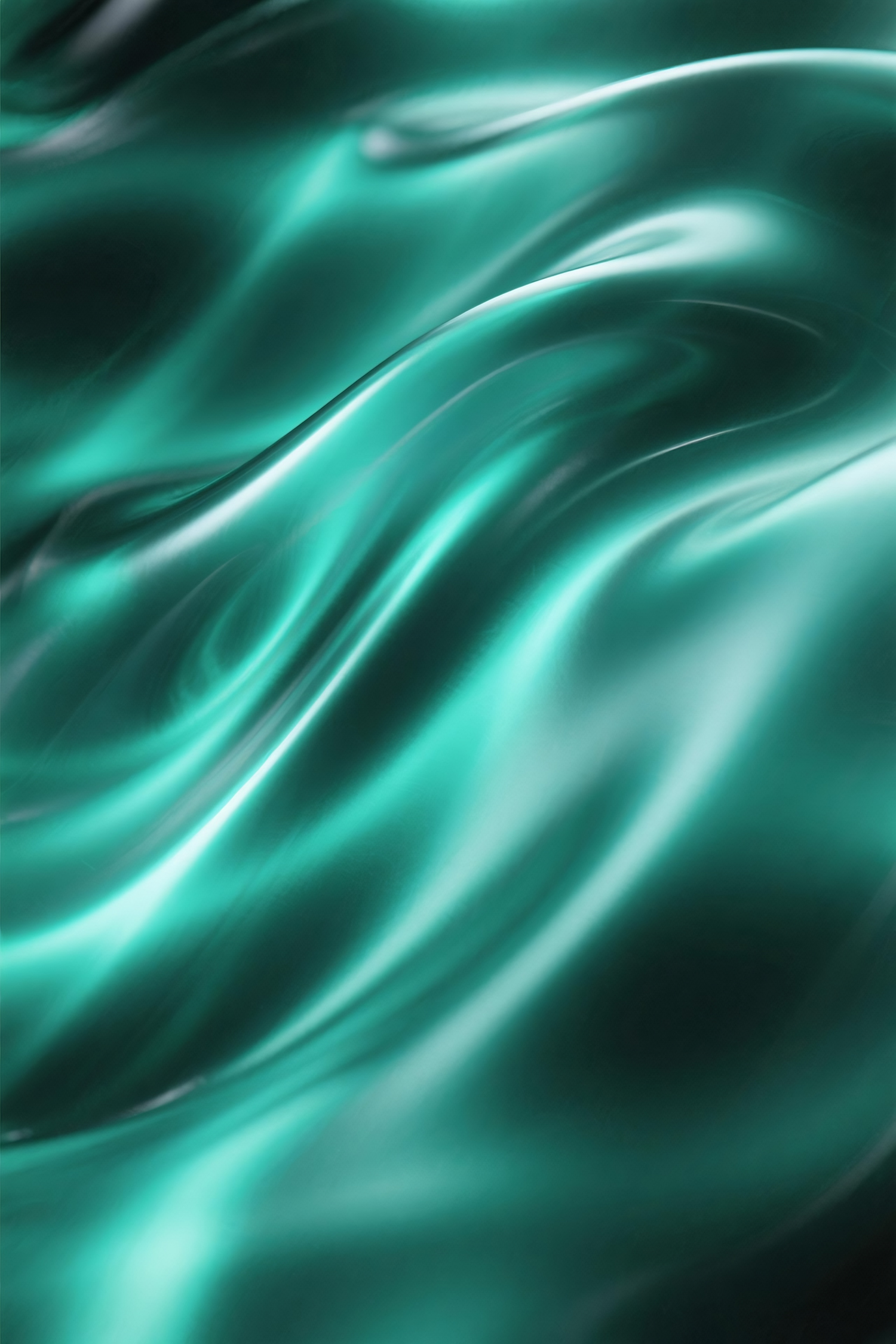 A vibrant teal abstract design with smooth, flowing textures and glossy highlights, creating a dynamic and modern visual effect.