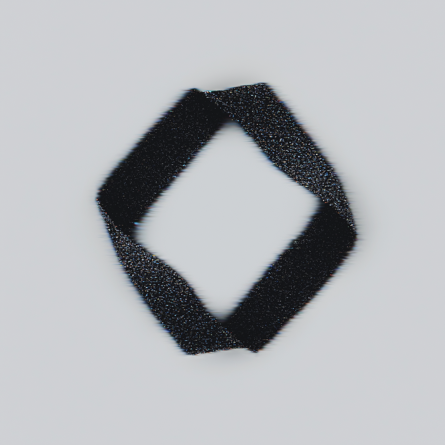 A textured black loop resembling a twisted Möbius strip on a light gray background, creating a striking geometric contrast.