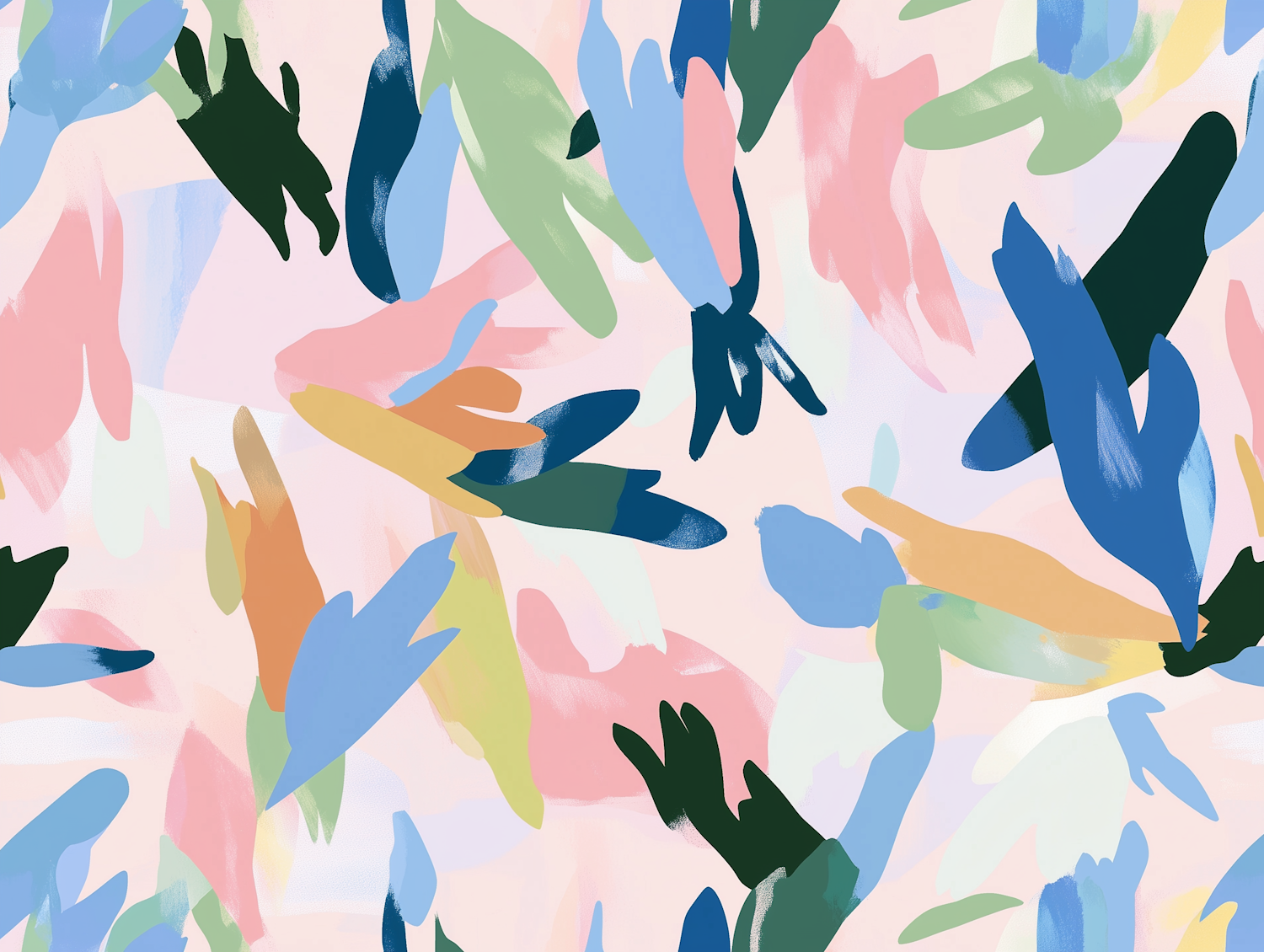 Abstract art with colorful brushstroke shapes in blue, green, pink, and orange on a pastel background. Vibrant and dynamic design.