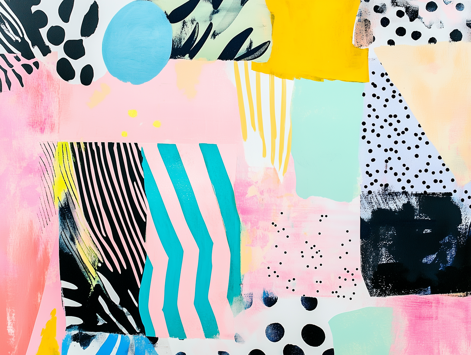 Colorful abstract art with bold patterns, pastel hues, and dynamic shapes. Perfect for modern decor or creative inspiration.