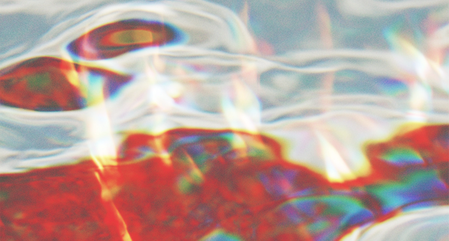 Abstract composition with vibrant colors and fluid textures, resembling rippling water or refracted light, creating a dynamic visual.
