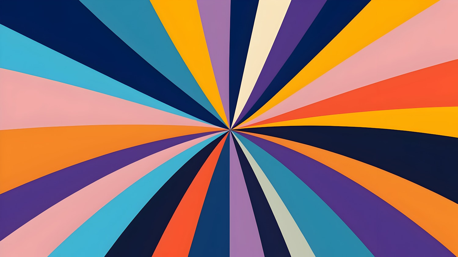 Colorful abstract radial design with bold and pastel hues like blue, orange, and pink converging at a central point.