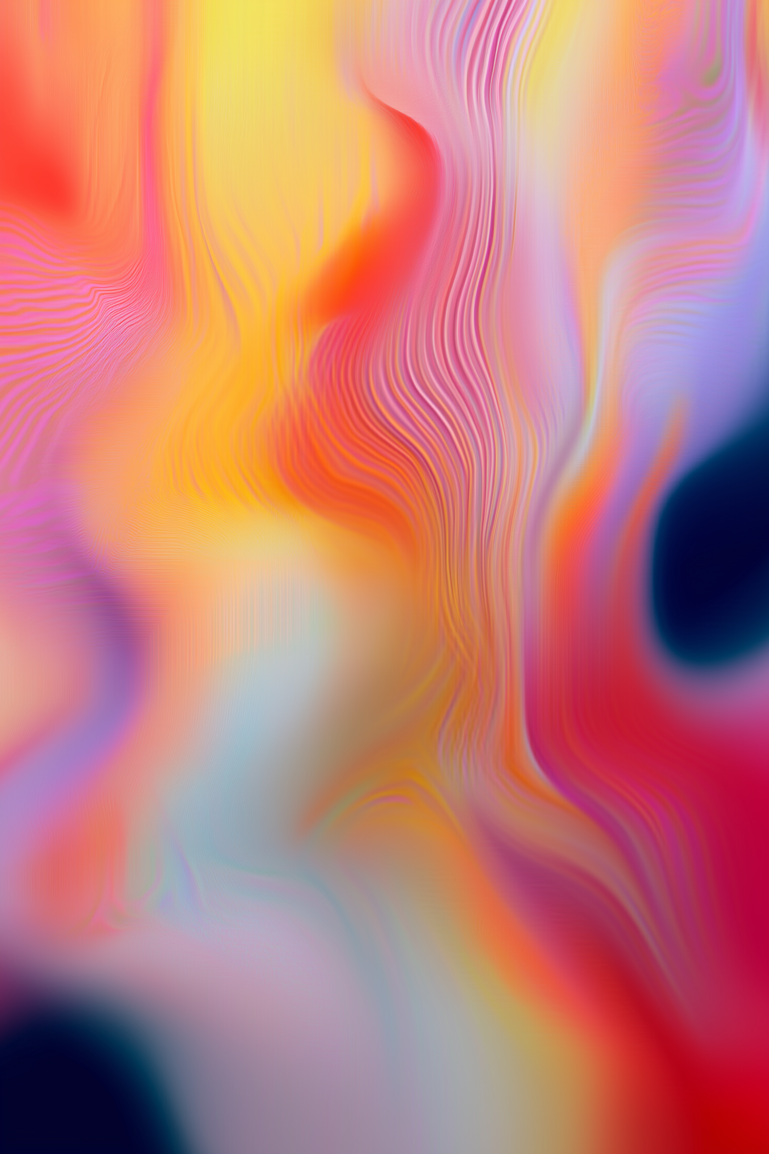 Vibrant abstract art with flowing patterns in yellow, pink, red, and blue hues, creating a dynamic and fluid visual effect.