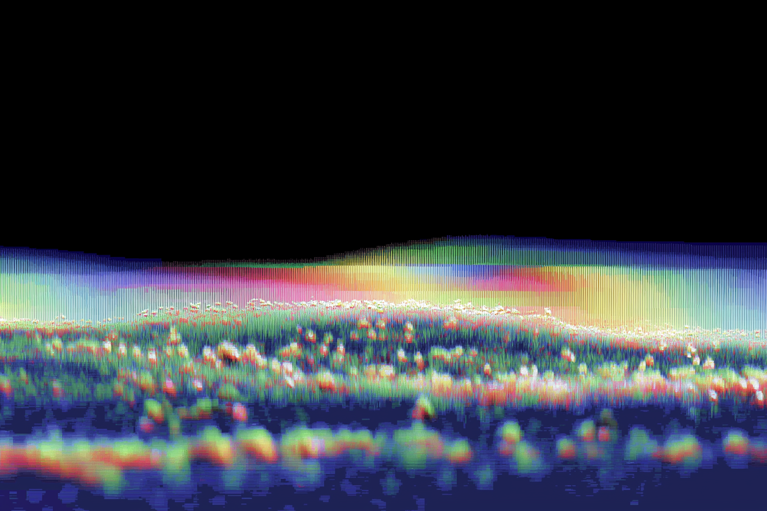 Abstract digital artwork with vibrant colors and textures, blending hues and gradients against a contrasting black background.