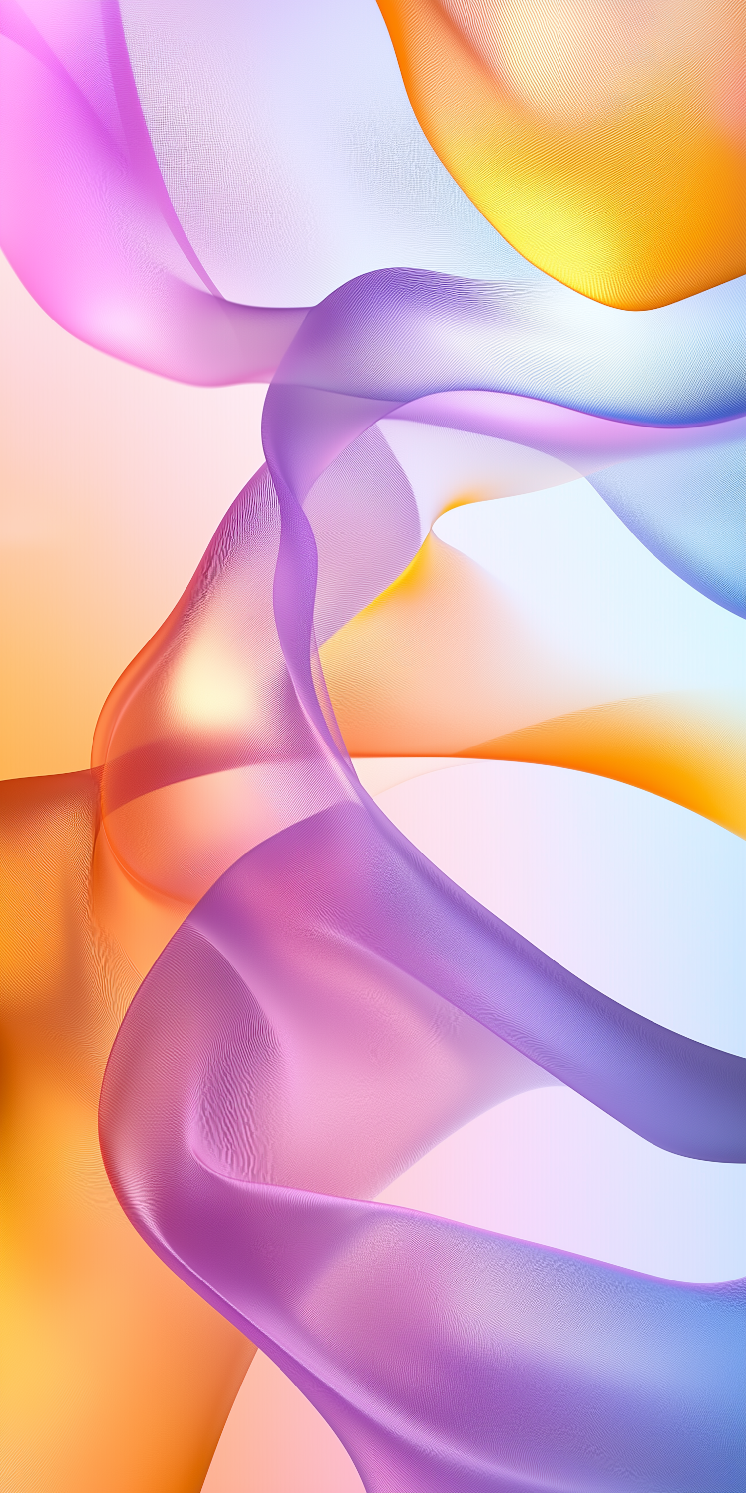 Colorful abstract ribbons in purple, pink, and orange flow gracefully over a soft gradient background. Perfect for modern design inspiration.