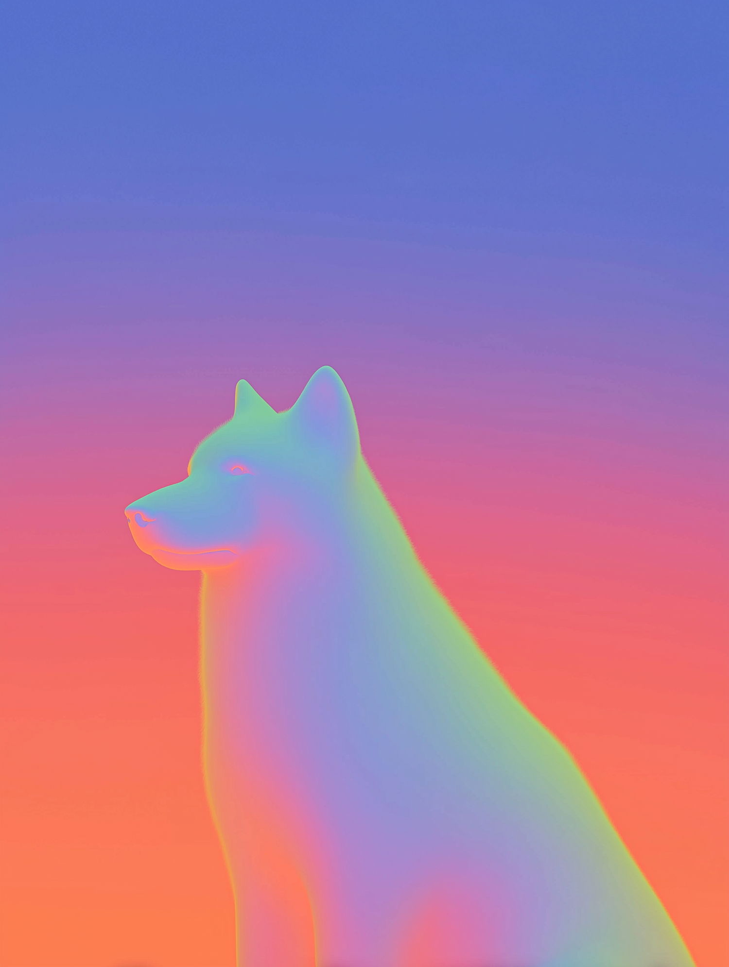 A vibrant gradient illustration of a dog's profile against a colorful background, blending hues of blue, pink, and orange.