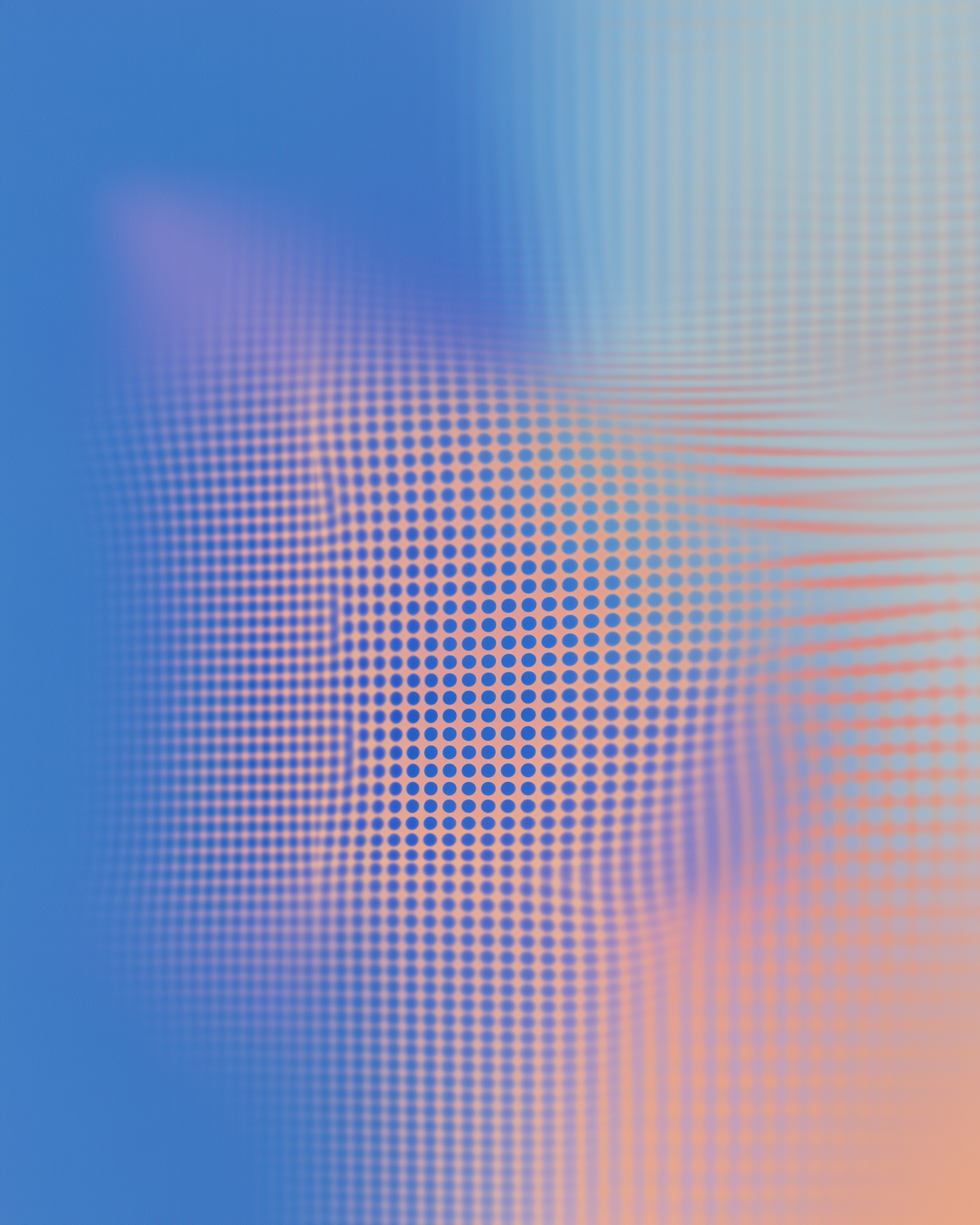Abstract gradient with blue and orange halftone dots, creating a dynamic and modern visual effect.