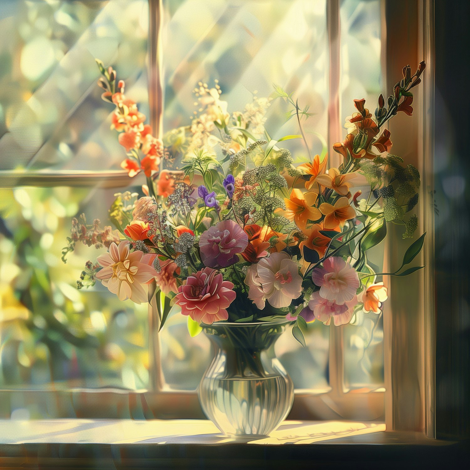 Vibrant Flower Bouquet on Windowsill