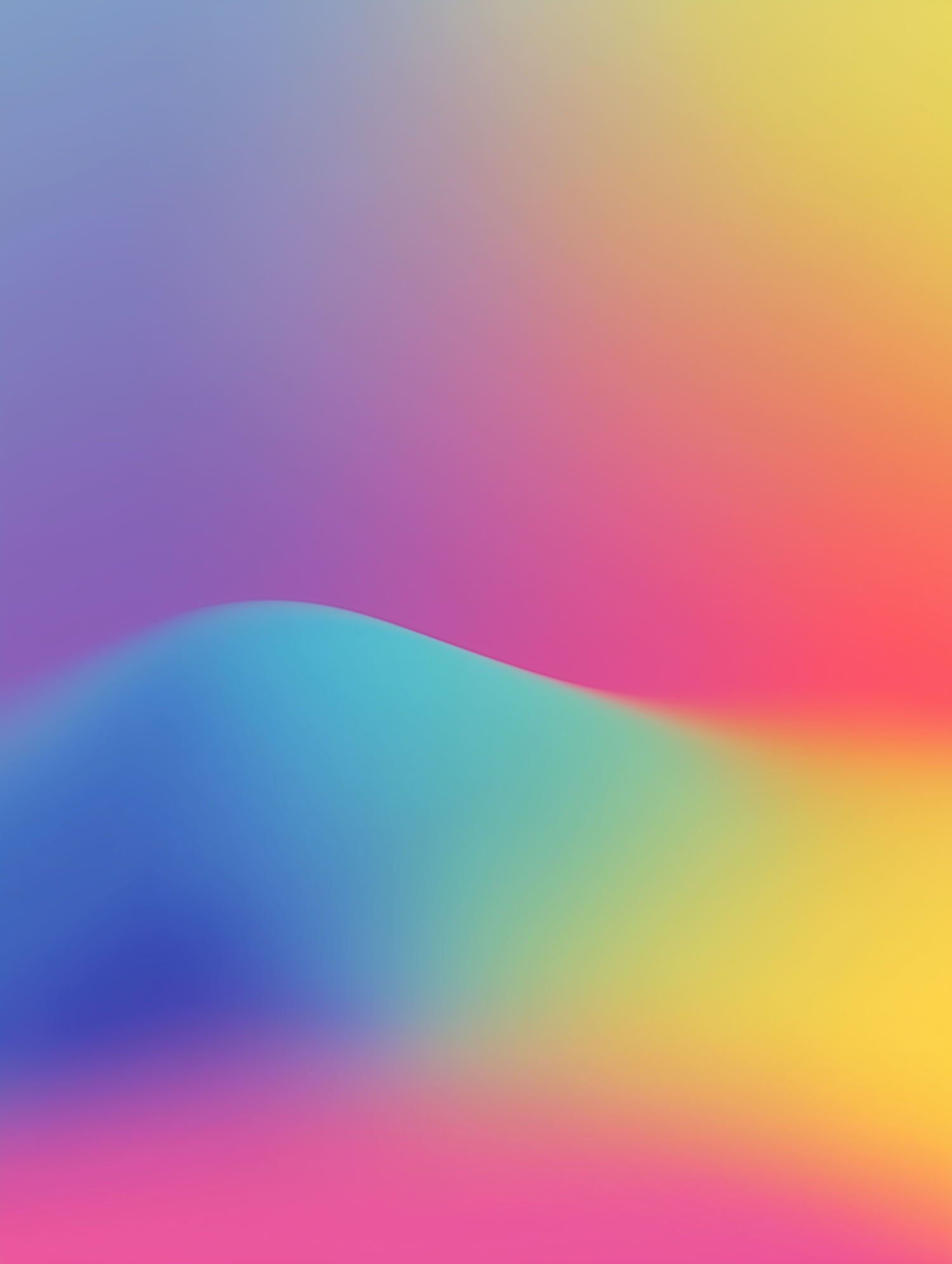 A colorful abstract gradient with smooth transitions from blue to pink, yellow, and orange, featuring a wave-like shape for added depth.