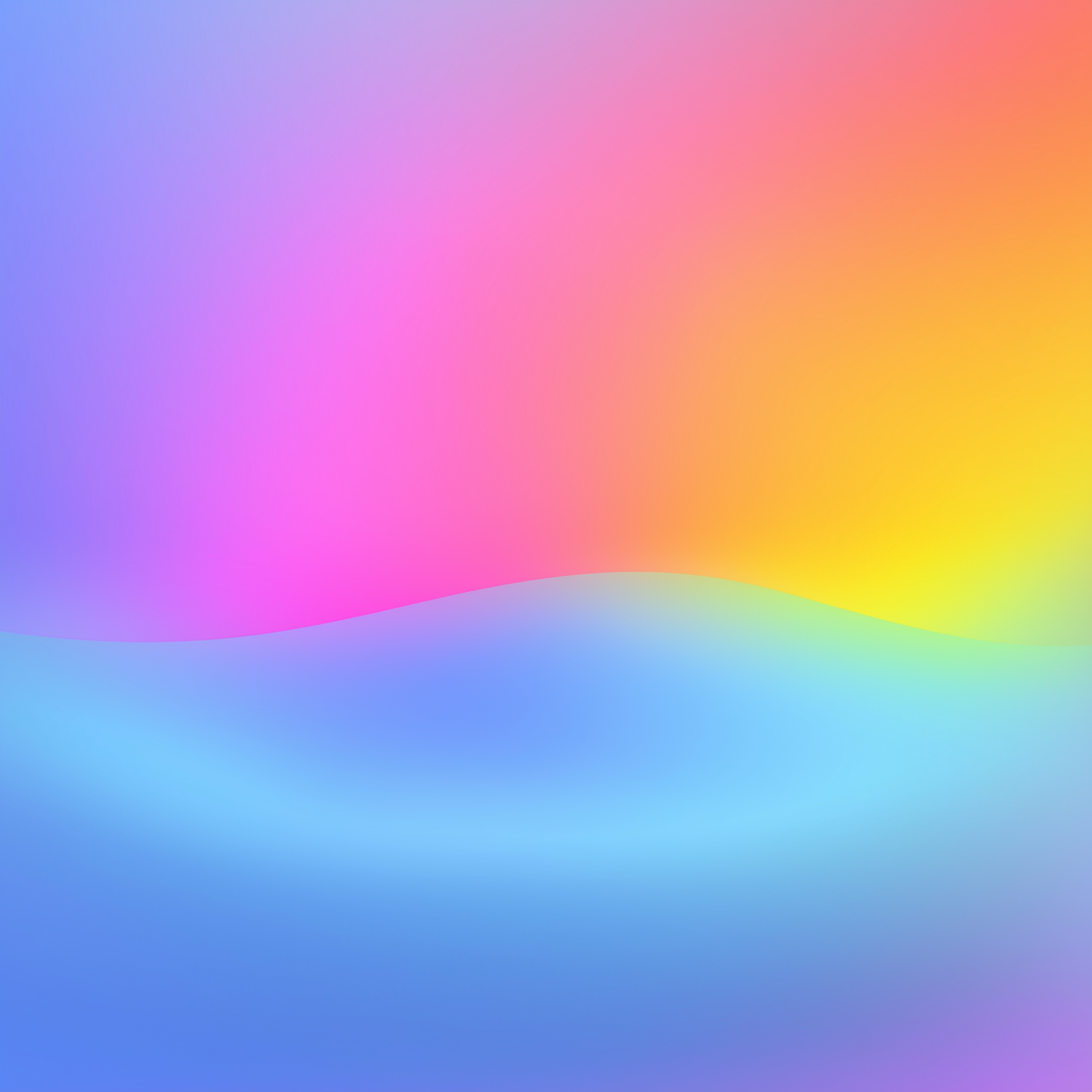 Bright abstract gradient with pink, orange, yellow, blue, and purple hues blending smoothly in a wavy, luminous design.