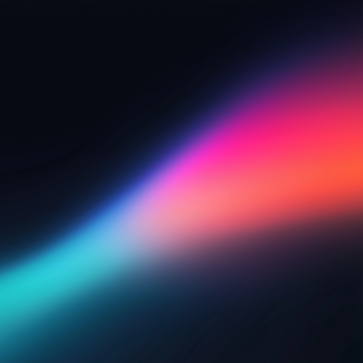 A sleek abstract gradient with cyan, magenta, and orange hues blending on a dark background, creating a glowing and modern aesthetic.