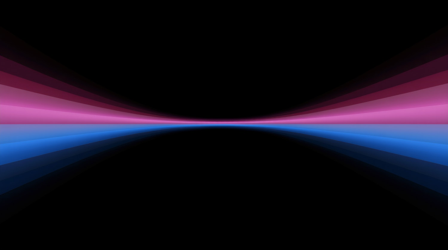 Abstract gradient design with pink and blue hues converging on a black background, creating a dynamic and futuristic visual effect.
