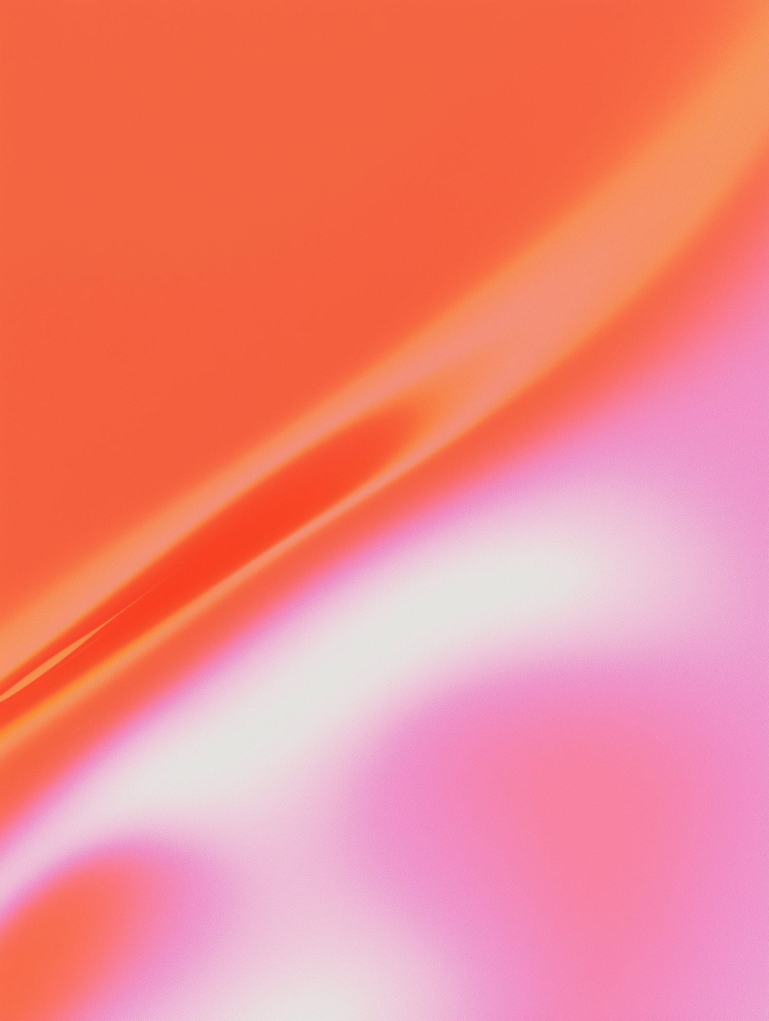 Bright abstract gradient with orange, pink, and white hues blending smoothly in a glossy, wave-like texture. Modern and vibrant aesthetic.