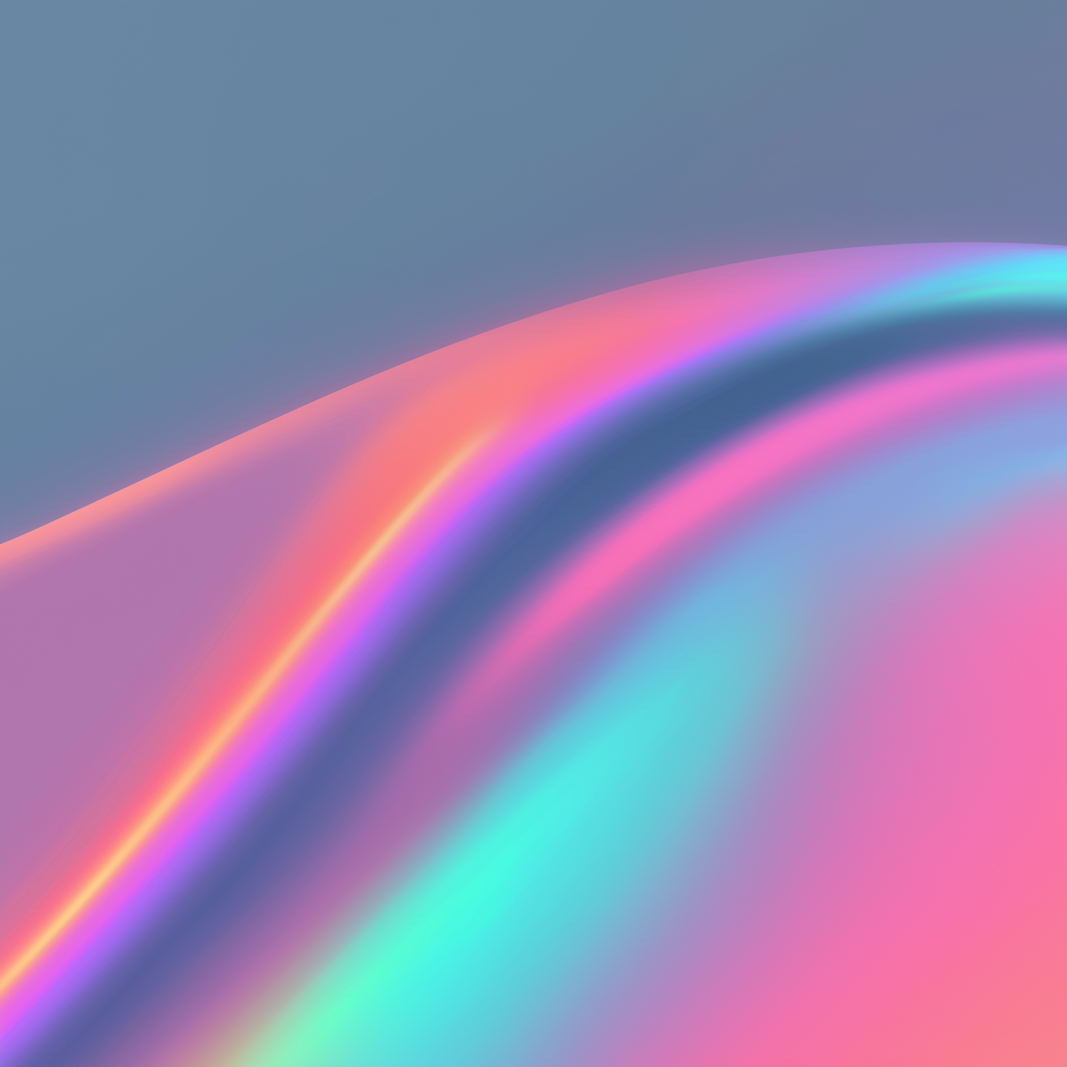 A vibrant abstract gradient with flowing waves of pink, purple, blue, and teal on a muted blue background, creating a dreamy, futuristic vibe.