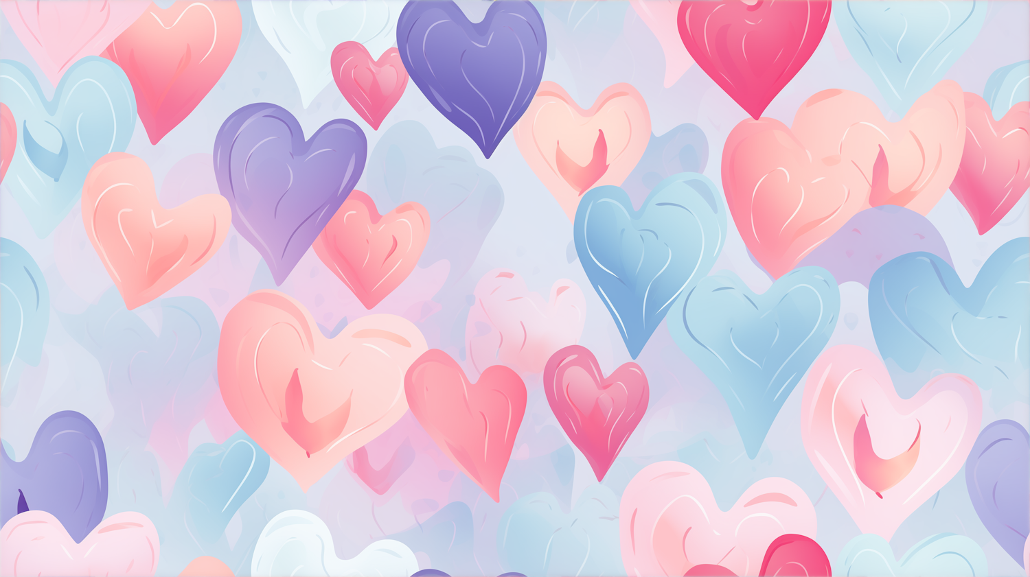 Whimsical pastel heart illustration with pink, purple, and blue hues, creating a dreamy and romantic atmosphere.